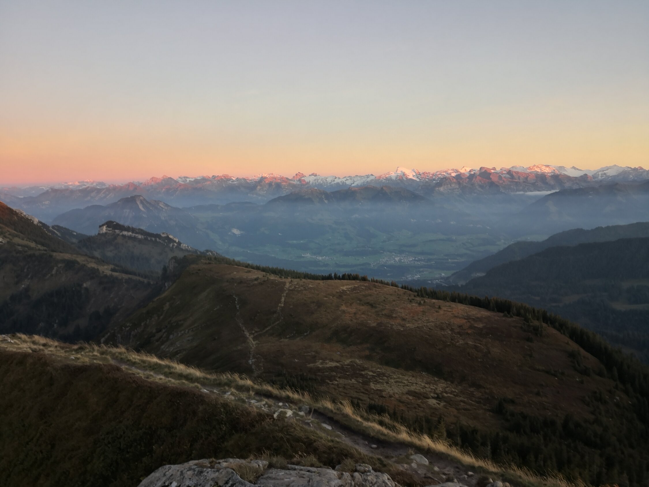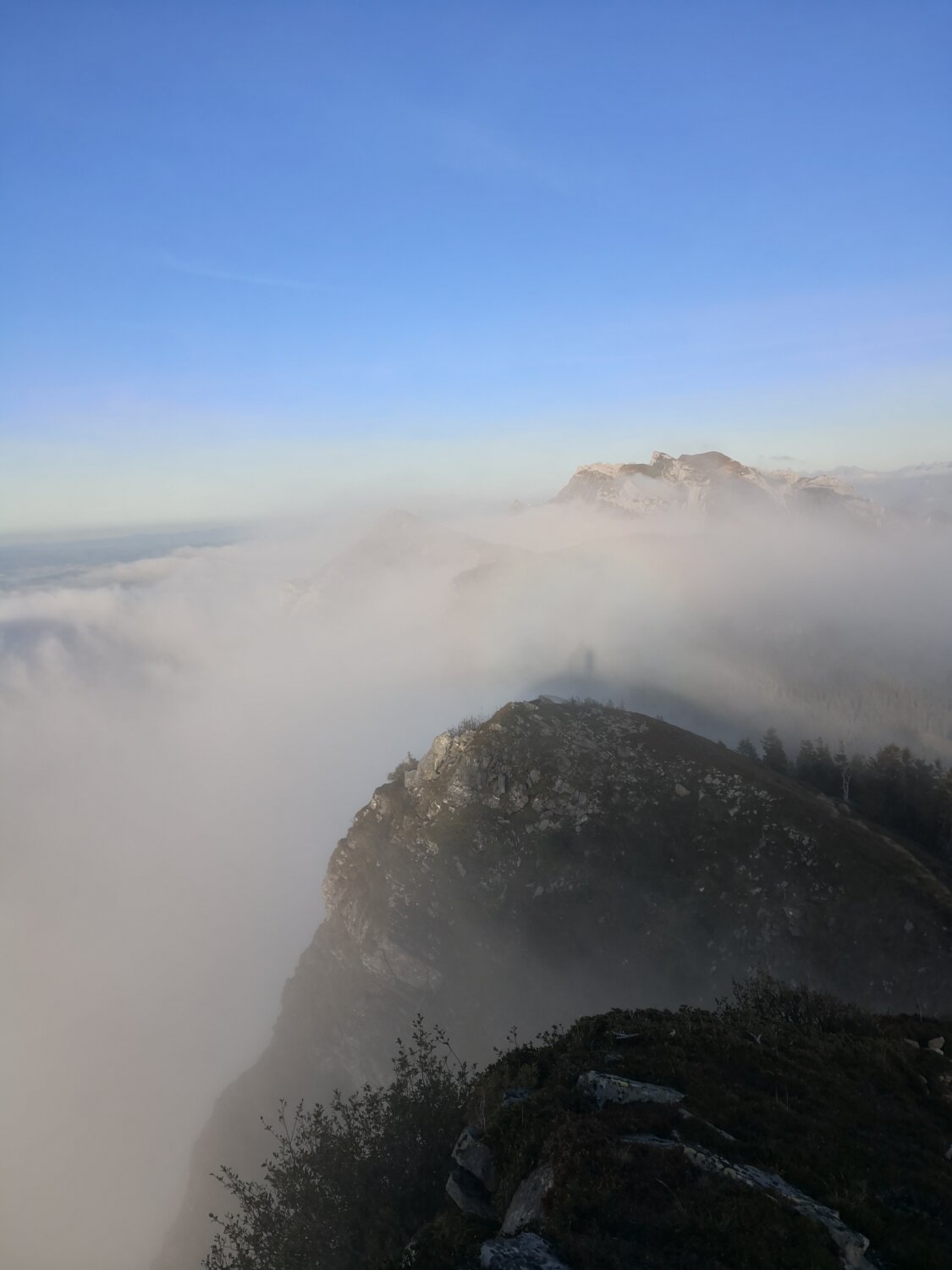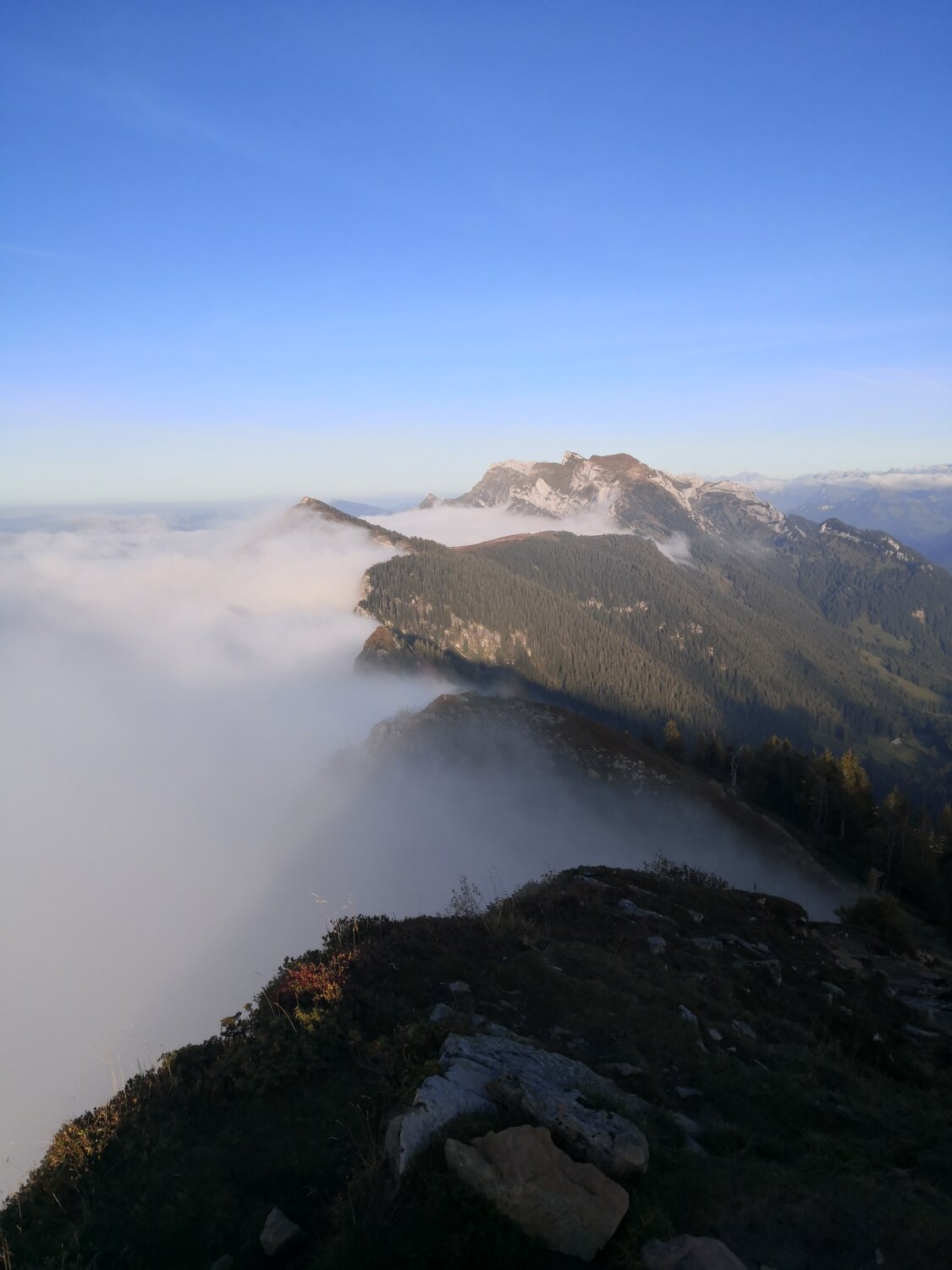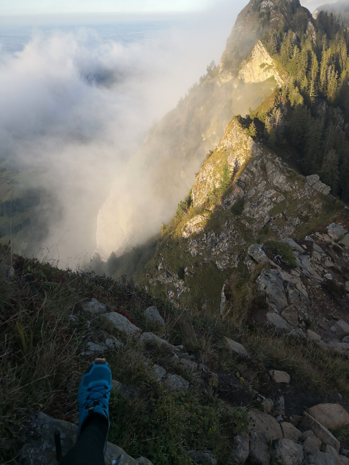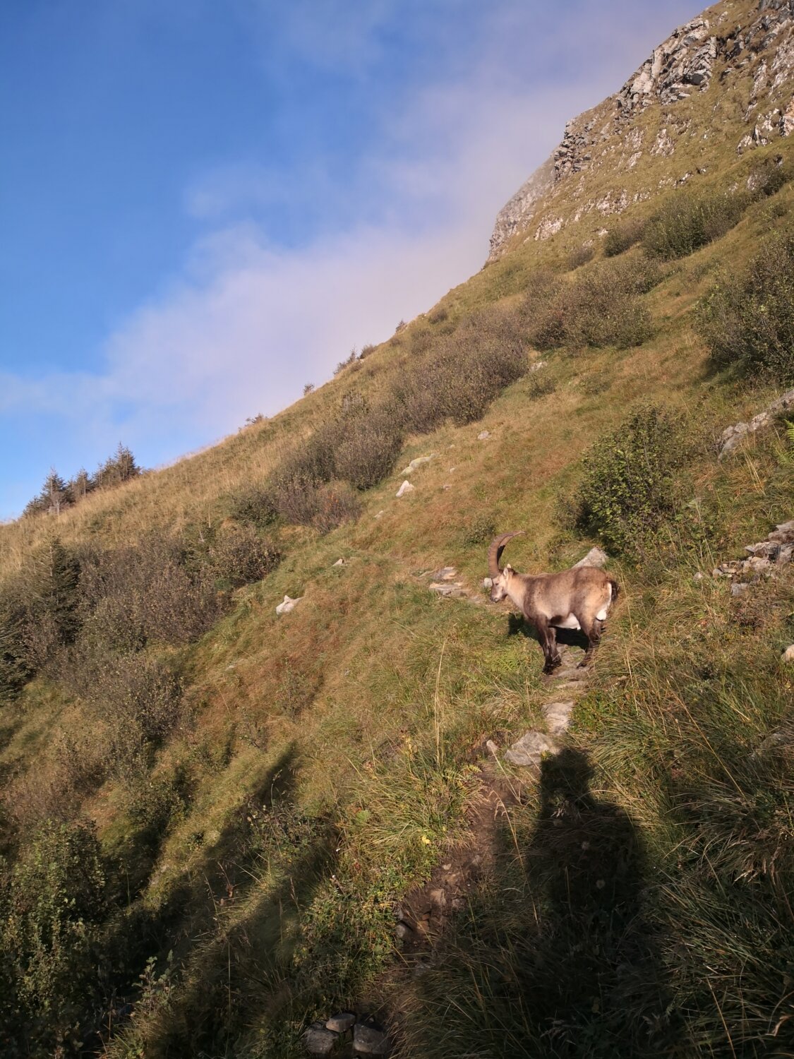 Wege leicht schmierig, aber kein Problem. Auf dem Grat kalte Bise. Kein Mensch weit und breit ausser ein paar Steinböcke.