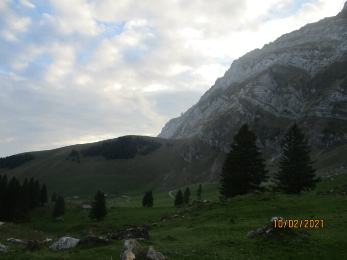 Trocken und schneefrei. Föhnlage, aber noch ohne übermäßige Windstärken. Außer uns zählten wir heute 8 weitere Begeher in der Chammhalden. Verglichen mit den Frequentierungen anlässlich meiner drei früheren Begehungen war das diesmal fast schon eine Invasion ;-).