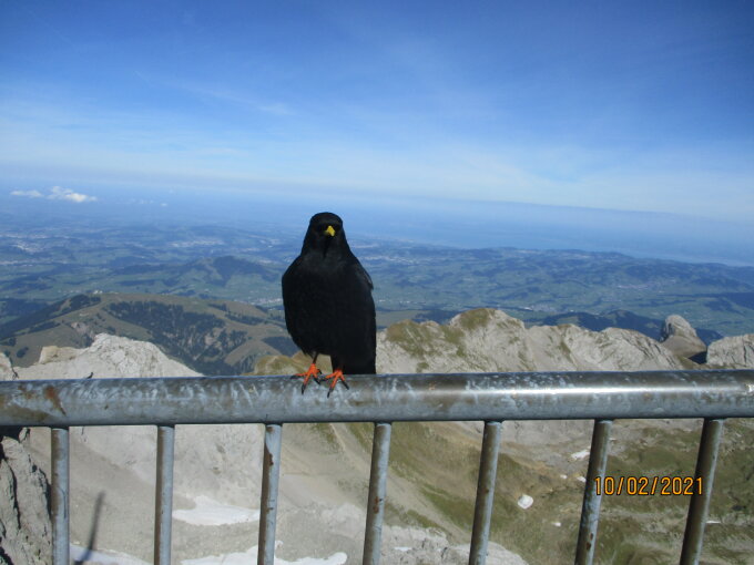 Als wir über Blau-Schnee zum Gipfel weitergingen, konnten wir bereits aus der Ferne eine von oben bis unten mit Figürchen behängte Himmelsleiter bewundern. Ebenfalls stark frequentiert war die Normalroute zur Schwägalp, wo uns selbst am vorgerückten Nachmittag eine nicht abreißen wollende Flut von Gipfelspiranten entgegenkam.