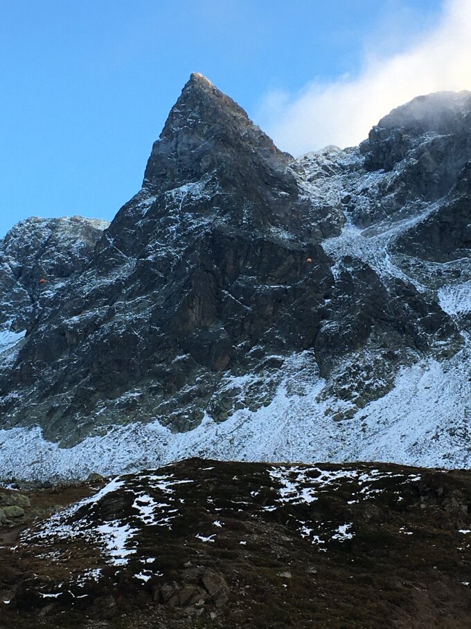 Anstrengende Tour bei diesen Verhältnissen, hatte über 4 Stunden für Aufstieg. Hatte Grödel montiert, war sehr hilfreich. Empfehlenswert bei trockenen Verhältnissen. Bei diesen Verhältnissen T4+.