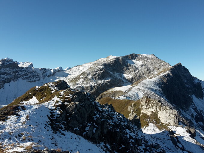 Start um 9:20 in Malbun, recht kalt, überall Raureif. Hurtig hoch zum Kreuz und auf dem Grat weiter, im Vorbeigehen noch den Spitz überschritten und problemlos auf den Augstenberg. Stellenweise liegt noch Schnee, z.T. auch eisige Stellen, aber nirgends gefährlich. Weiter zur Pfälzerhütte und hoch zum Naafkopf. Dieser Abschnitt ist stellenweise etwas heikler, da noch recht Schnee lag und man auf eisigen Stellen ausrutschen kann, yours truly hat Spikes montiert und die Sicherheit und den Komfort geschätzt, ein Trailrunner hats aber auch mit seinen Schüehli geschafft. Rückweg auf gleicher Route zur Pfälzerhütte, Boxenstopp und weiter über Gritsch (Strasse schneefrei, eine Stelle Glatteis, etliche Biker) und Tälihöhi zurück nach Malbun.