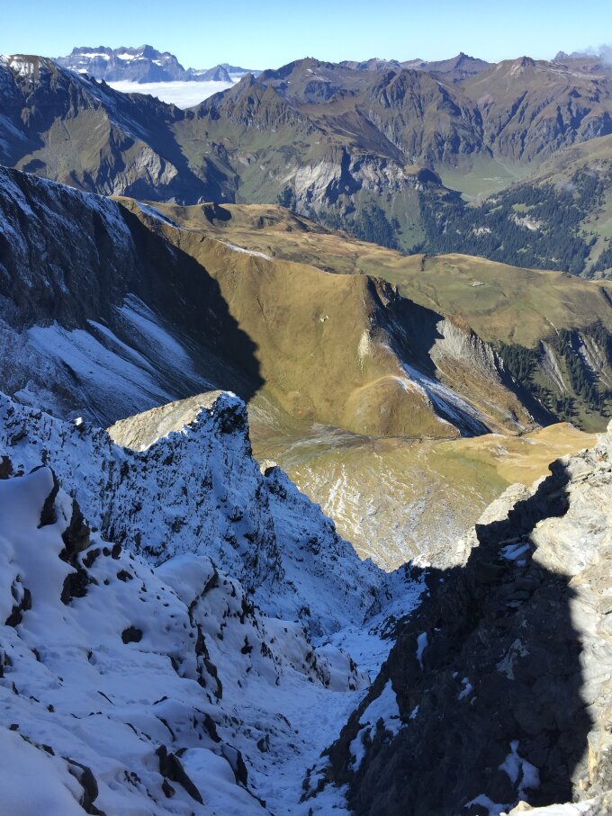 Prächtiges Wetter, erst am späteren Nachmittag kam der Nebel auch ins Weisstannental. An der Sonne mild, auf den Gipfeln etwas windig. Südseiten weitgehend aper, teilweise etwas schmierig. Nordseiten weit hinunter eingeschneit, da und dort auch Eis auf den Wegen. Die nordseitigen Kraxeleien verlangen deshalb besondere Vorsicht, gerade im Abstieg.