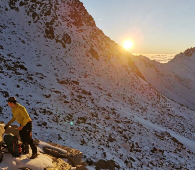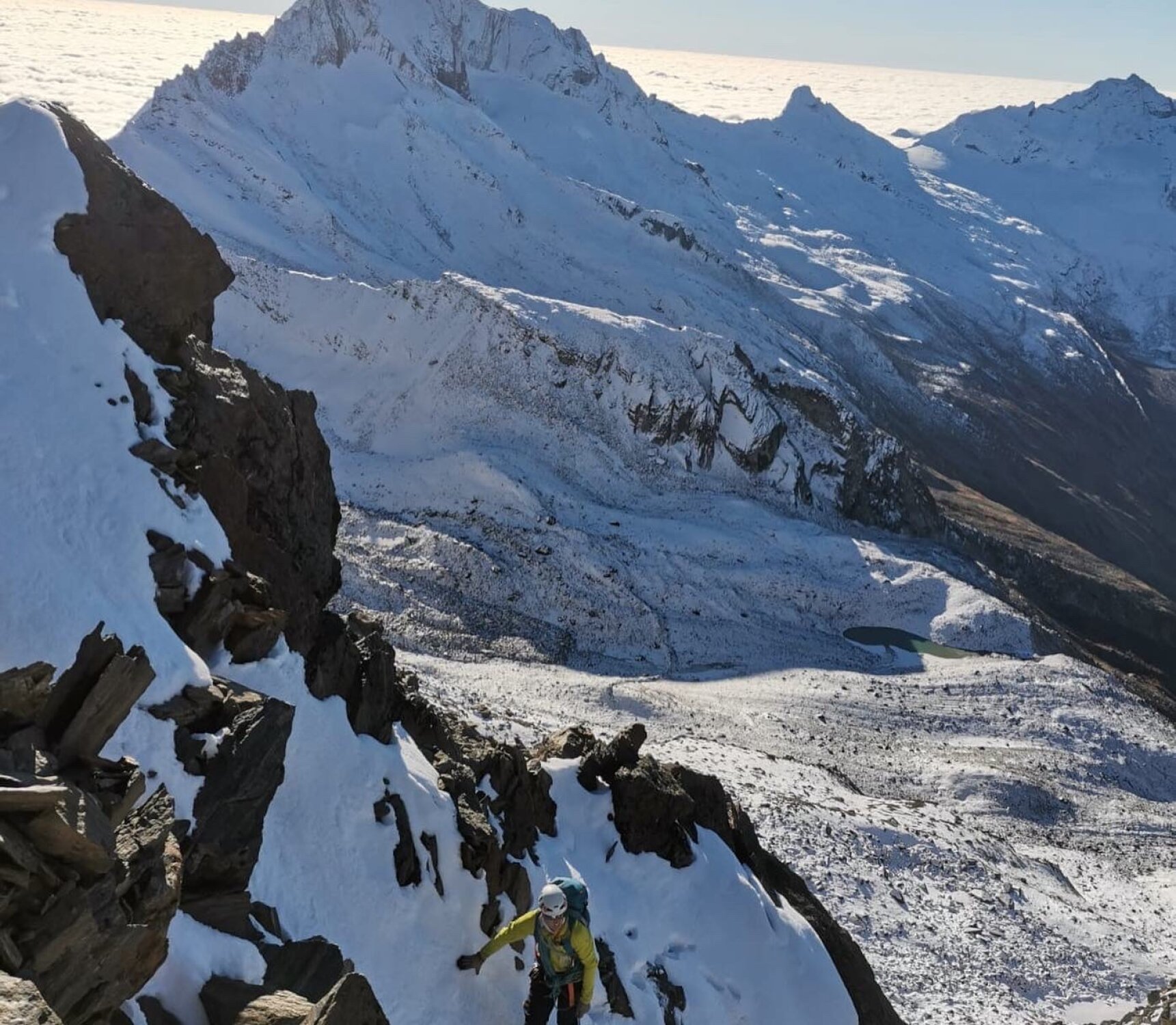 Allgemein immer noch gute Bedingungen. Sowohl Rotgrat (erstes Stück) als auch SSW-Grat grössenteils schneefrei und ohne Steigeisen und Pickel machbar.