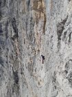 SL11: Auf dem Band etwa 15 M nach links queren und dann diagonal nach links auf die Platte NH und BH. Danach ca. 10m nicht absicherbarer Run-Out über Wasserrillen.