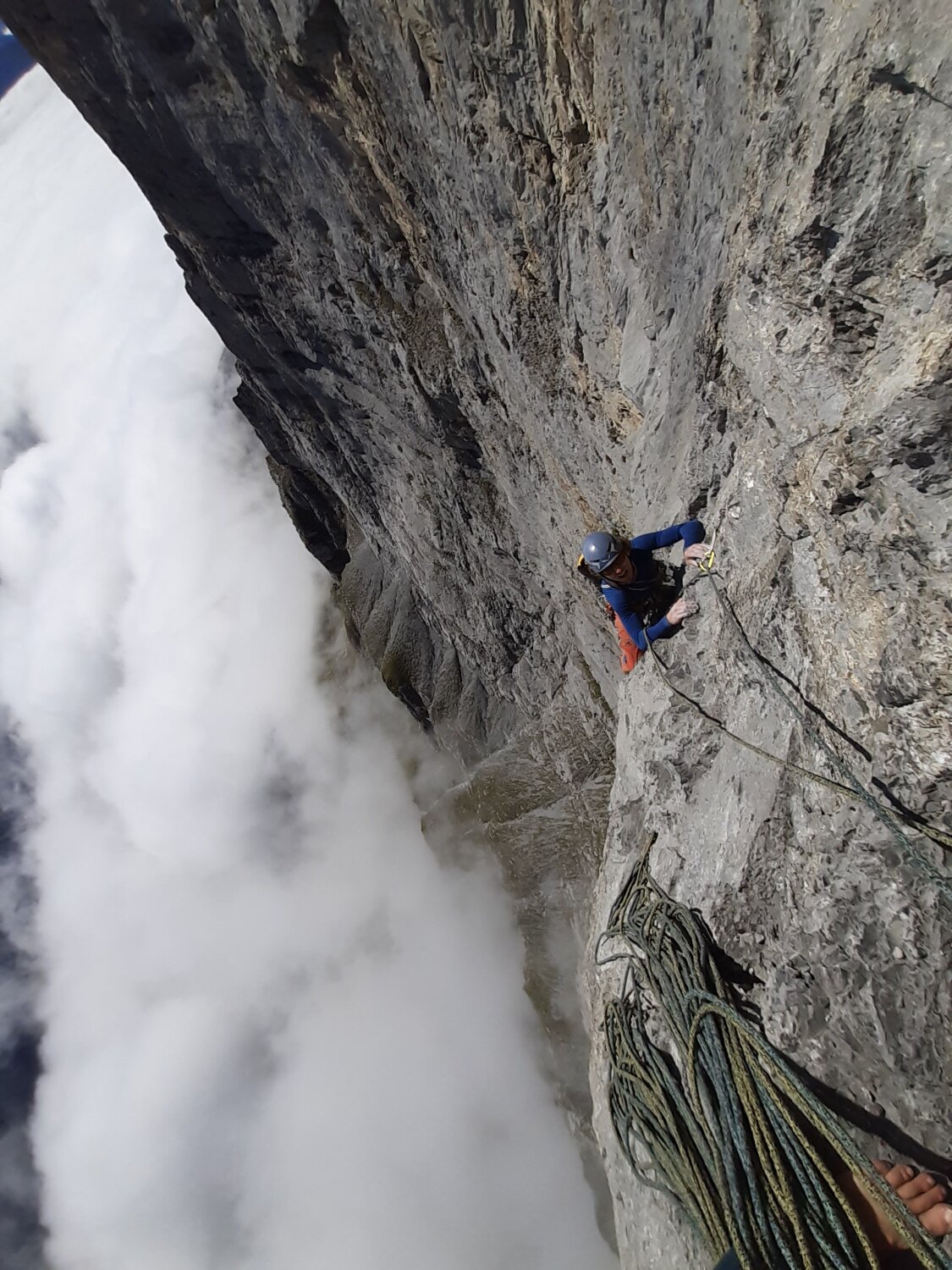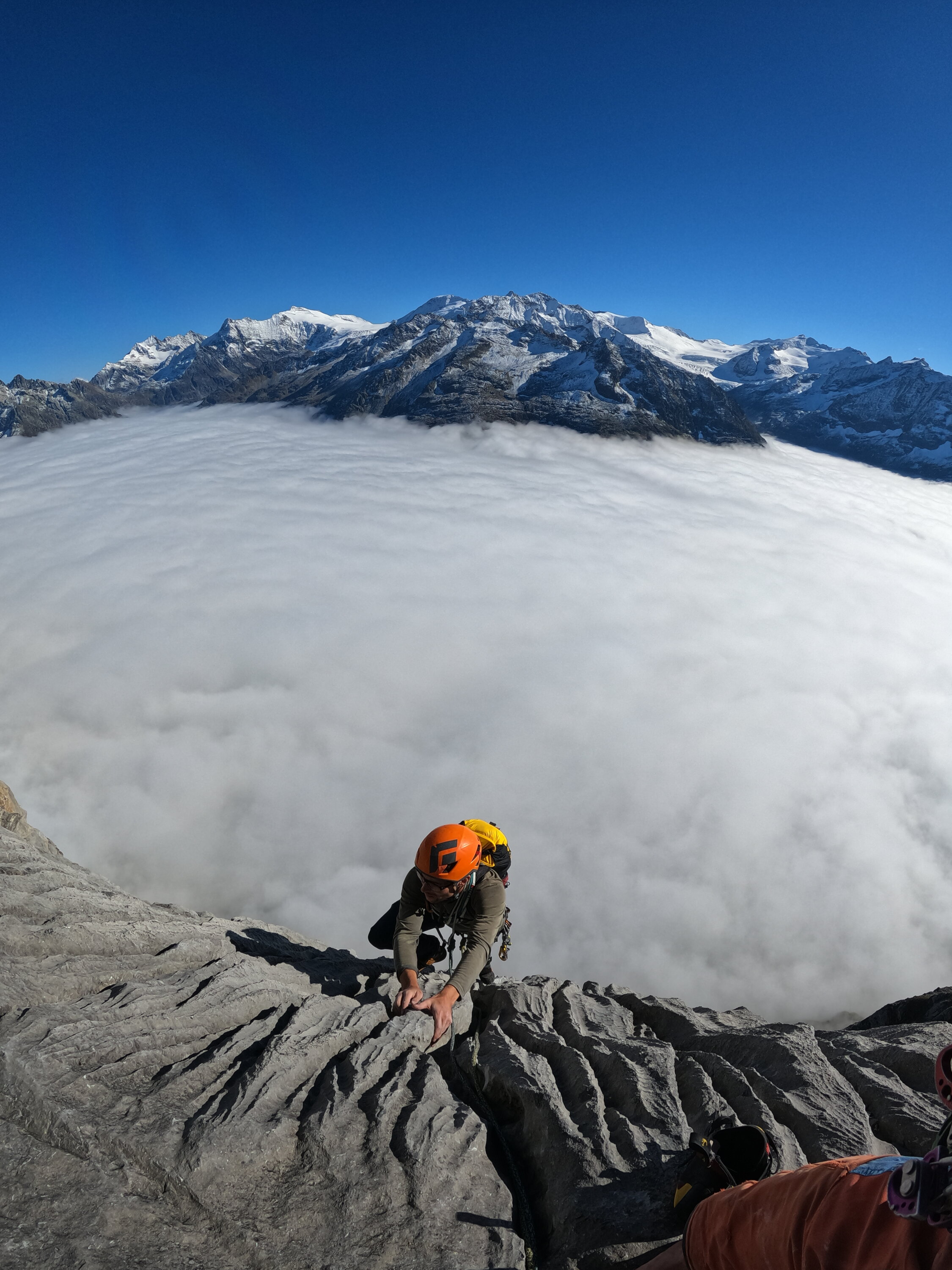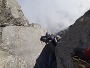 Der Zustieg und die gesamte Route waren, inklusive des Ausstiegskamins, trocken und Schneefrei.