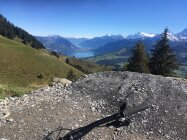 Hinweis: Am Eingang zum Trail am Bärgli hängt ein Transparent, das auf Waldarbeiten hinweist. Zwei Baumstämme dementsprechend quer über dem Trail, aber keine laufenden Arbeiten.
