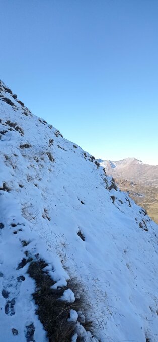 Aufstieg vom Glaspass teilweise schneebedeckt (max. 20cm), aber noch gut machbar. Steigeisen helfen, aber nicht zwingend