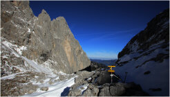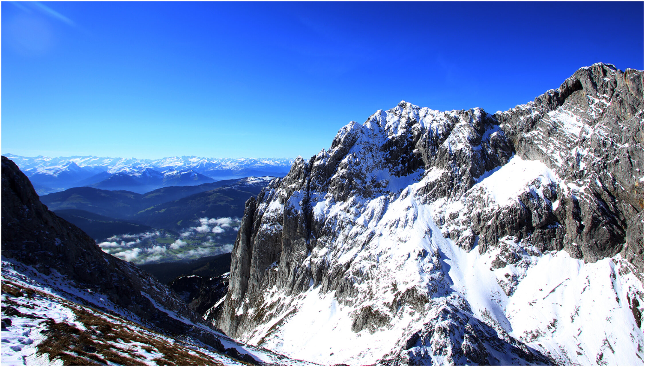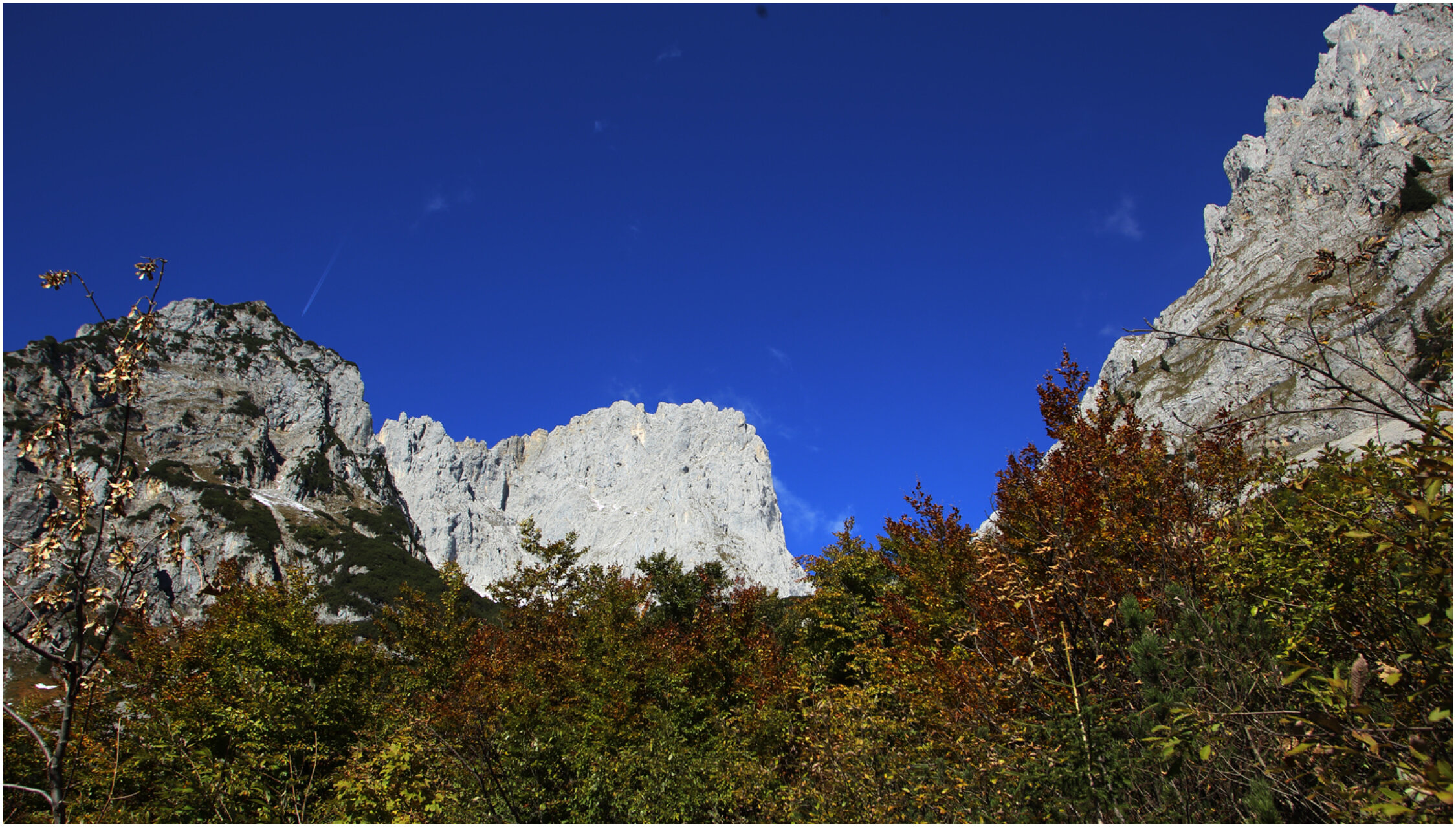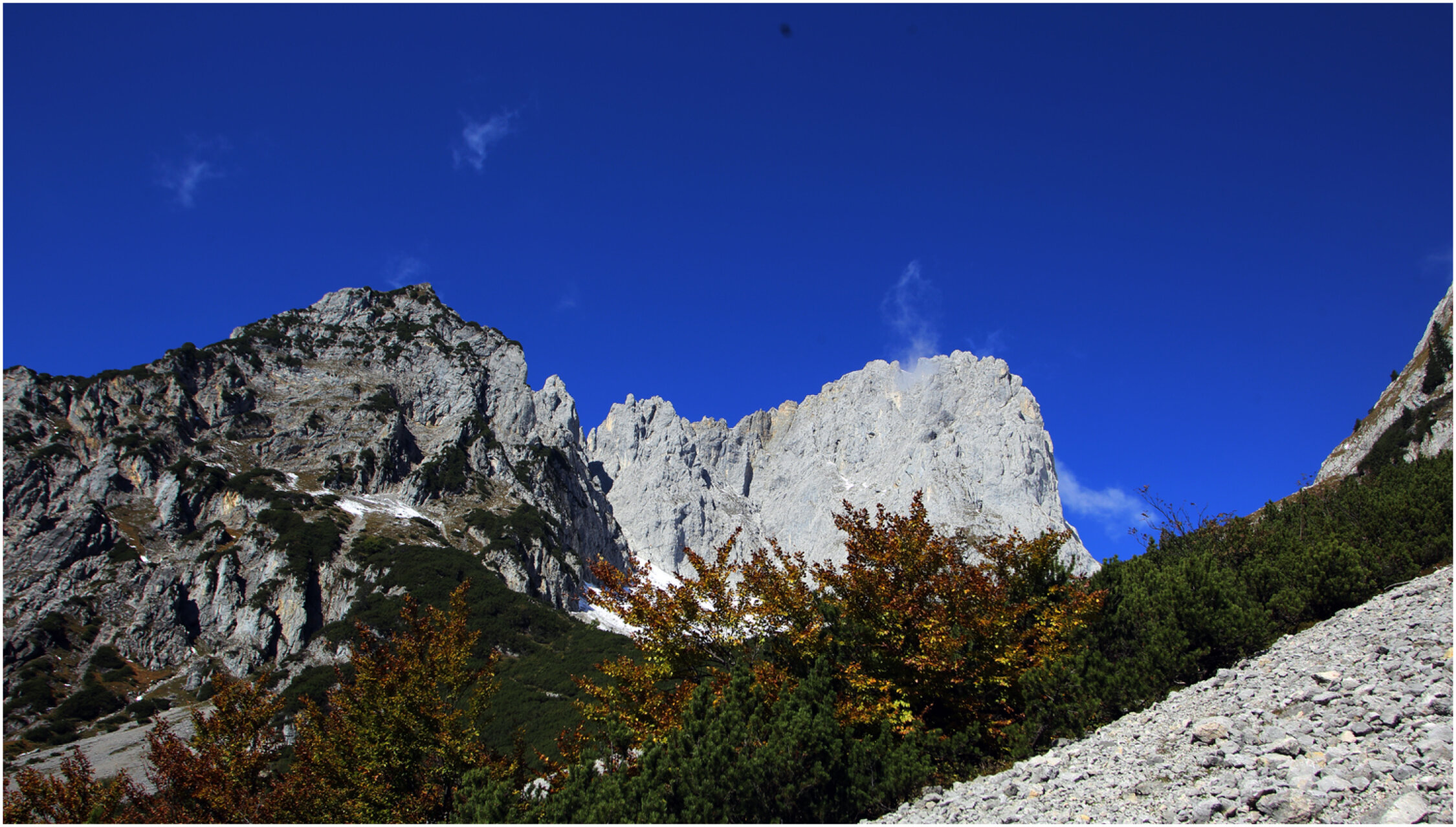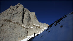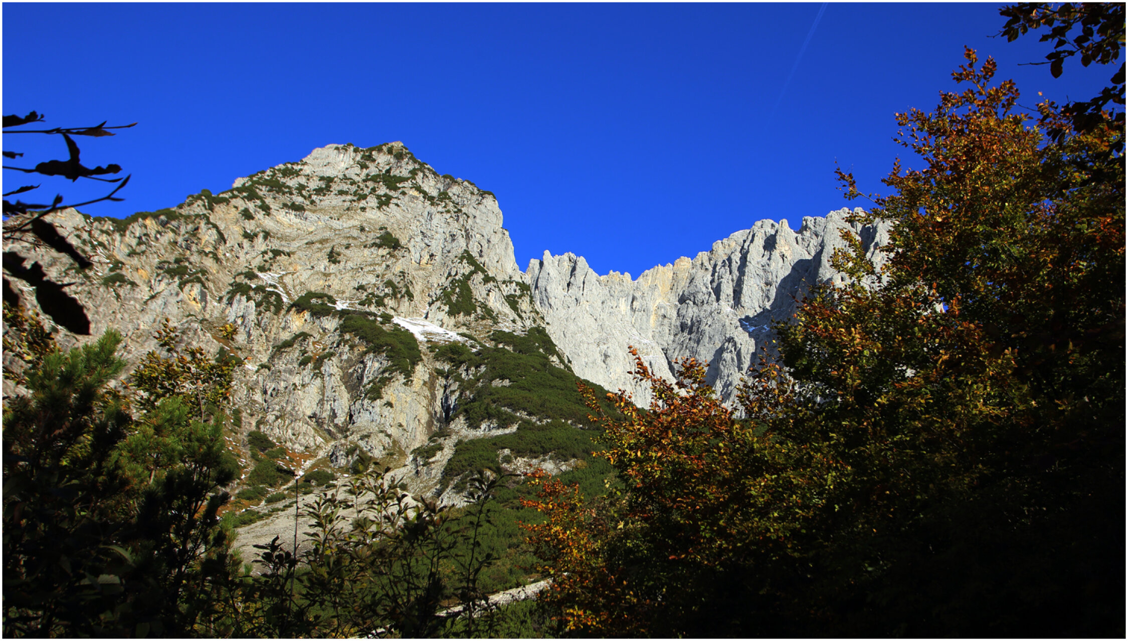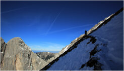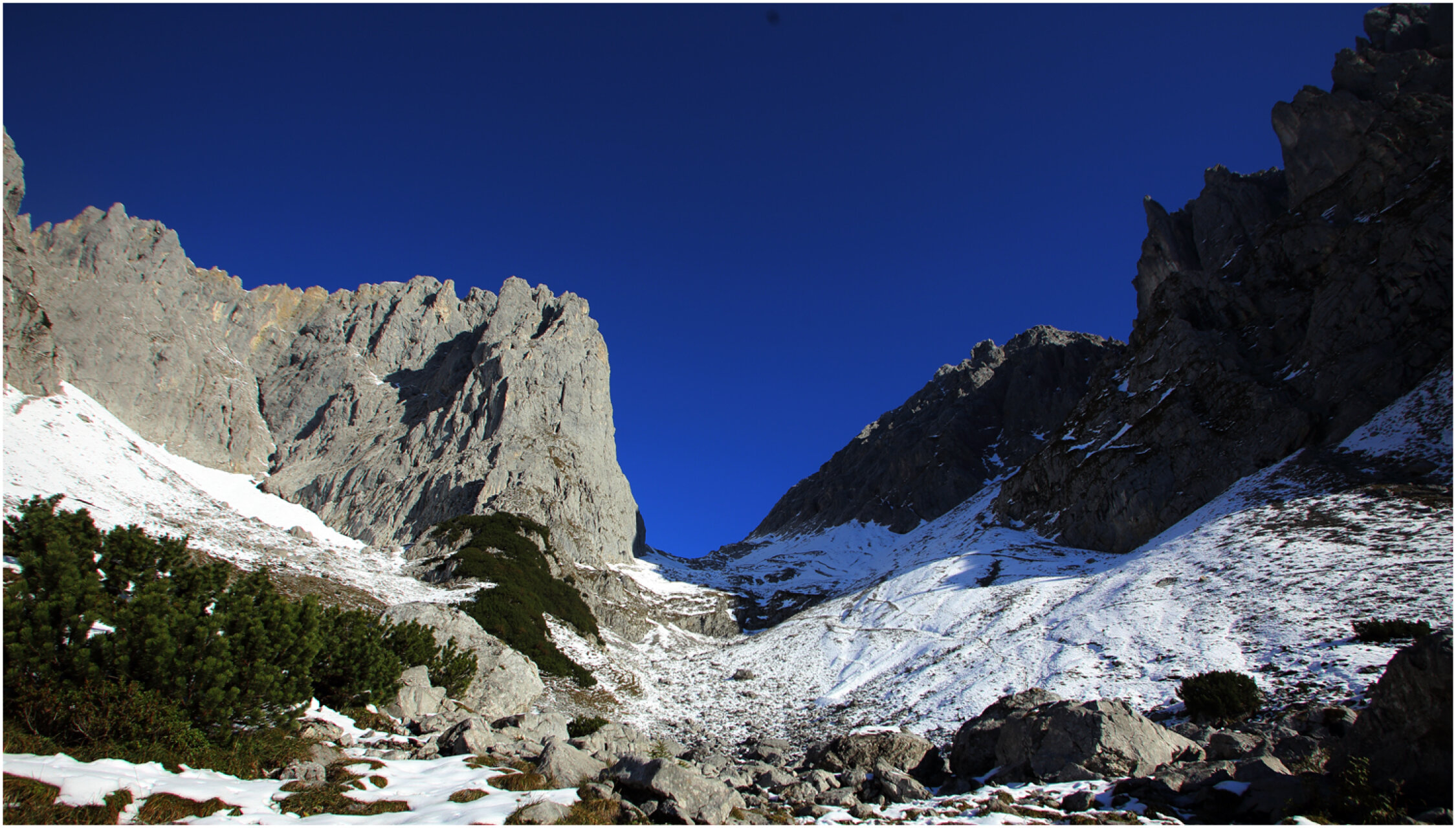 Bis etwa 1600m hinauf weitgehend schneefrei, danach immer mehr Schnee bis zum Ellmauer Tor. Zum Gipfel hinauf wieder weniger Schnee, aber bisweilen eisig.