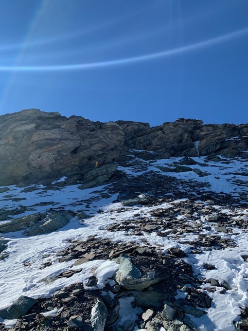 Der Abstieg vom Piz Tomül in die Nordostflanke wurde durch Schnee erschwert, aber gut machbar. Bei Pt. 2639 haben wir uns für den Abstieg nach Osten entschieden, da uns ein direkter Abstieg ins Rinderpirglückli wegen Schnee und Eis zu heikel war. Der Rest der Route ist schneefrei und problemlos begehbar.