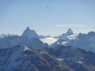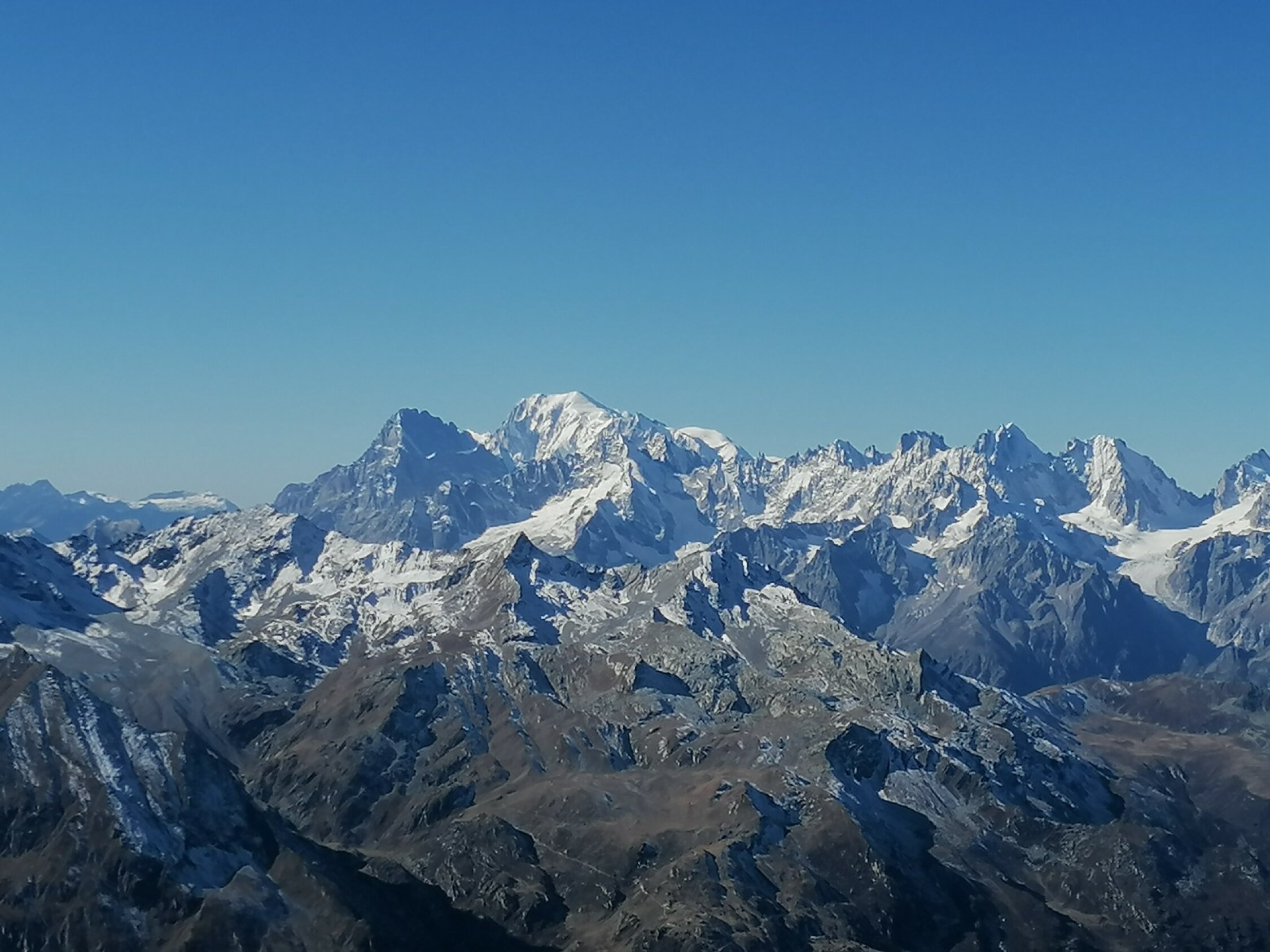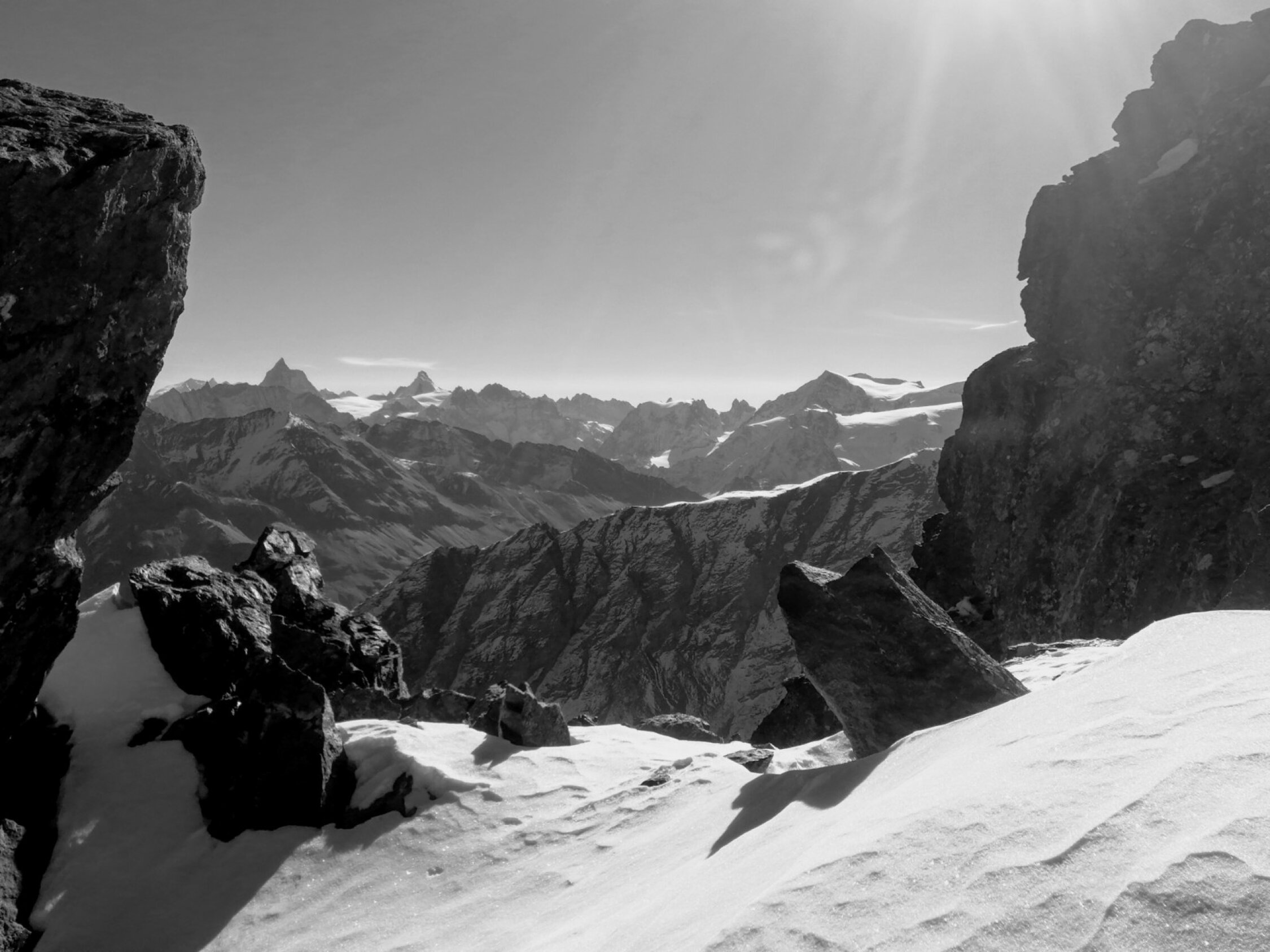 Von der Rosablanche hat man ein wunderschönes Panorama zu den Berner- und Walliseralpen. Im Westen grüsst ganz nah das Mont Blanc Massiv, der Zaubergarten.