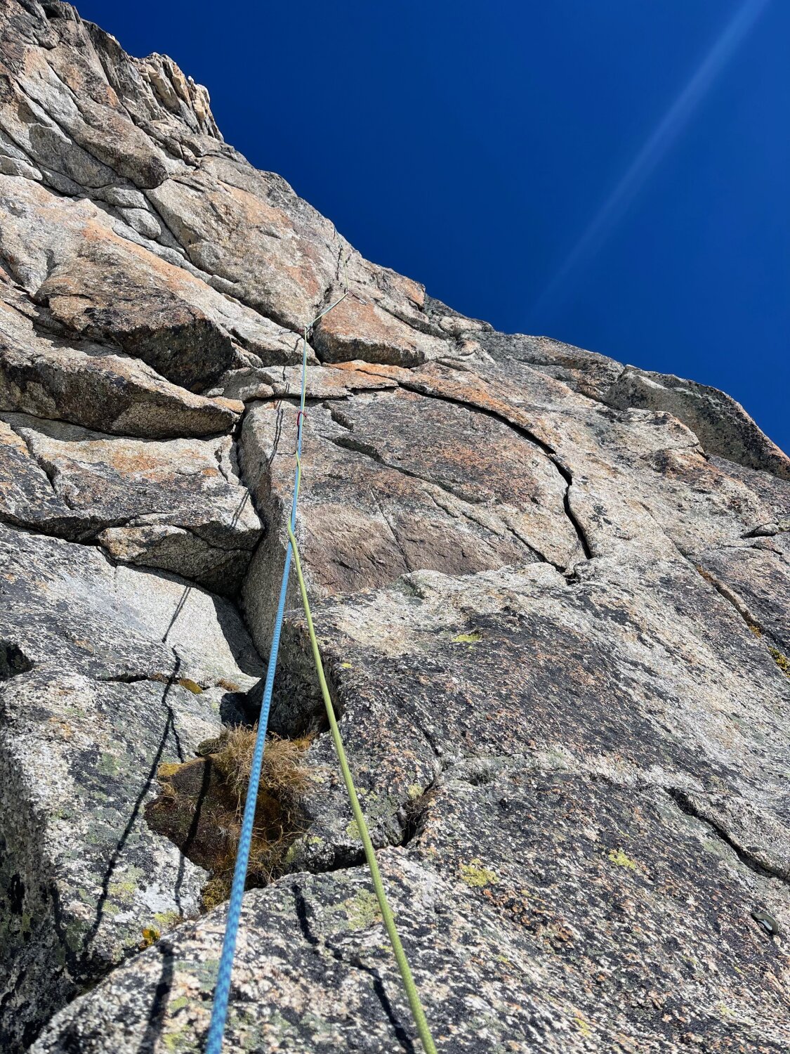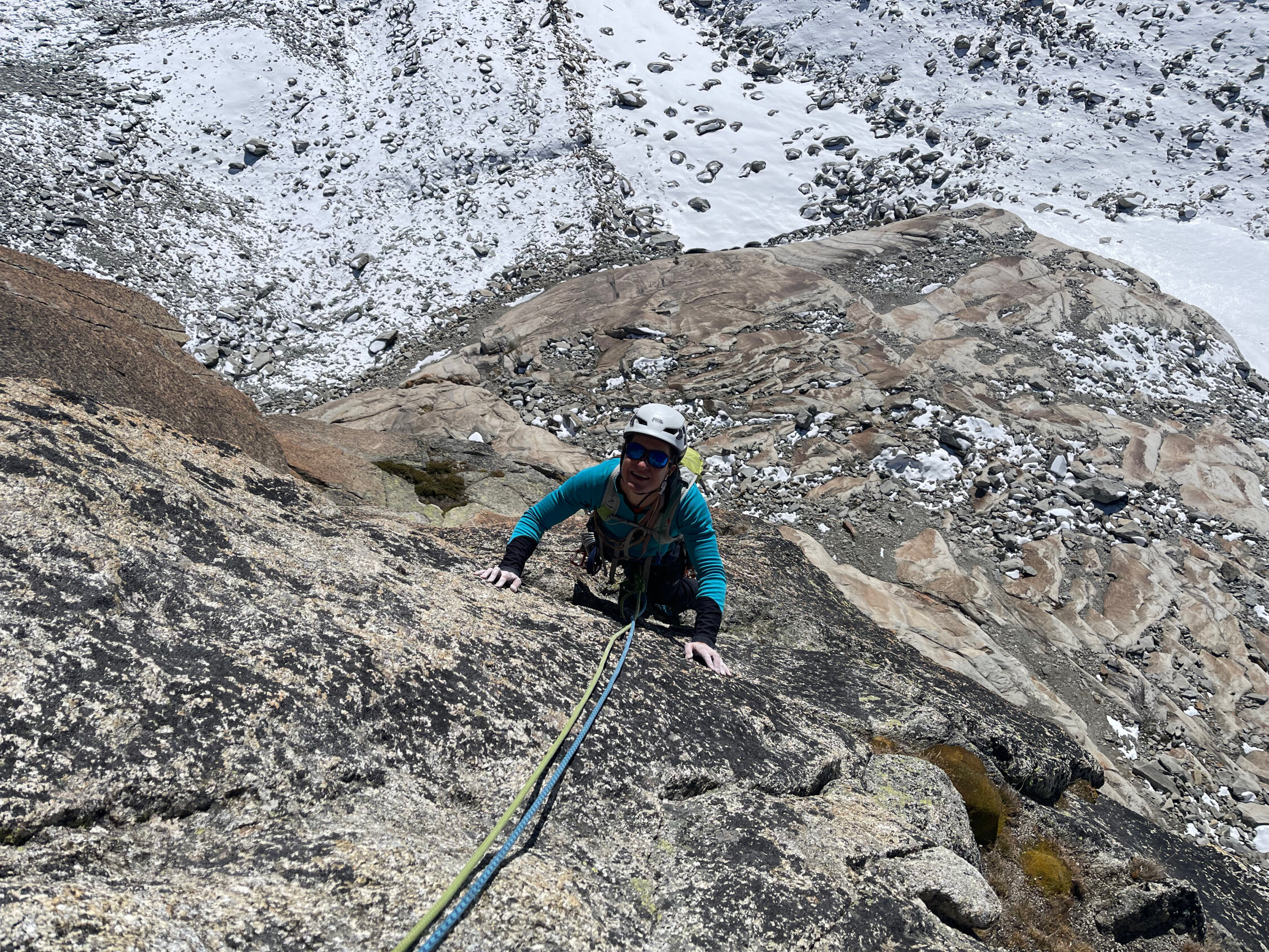 Beste Herbst-Bedingungen: Zustieg im Schnee, aber warmer Fels und "fast" T-shirt Wetter.