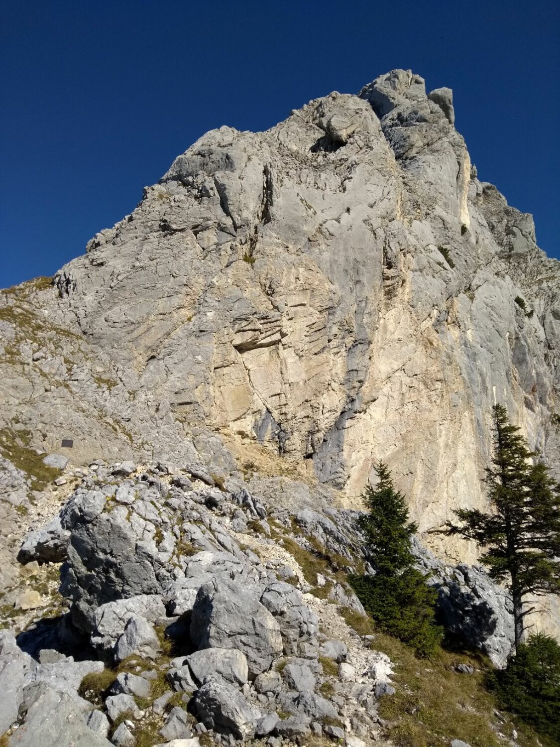Den Aufstieg zum Geiselstein haben wir ausgelassen und die Umrundung zur Kenzenhütte gemacht. Die Südwand ist trocken und schneefrei.