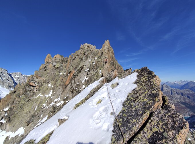 Etwas Neuschnee: Auf Gletscher hilfreich (Steigeisen und Pickel nur mitgetragen). Beim Abstieg auf Löcher aufpassen.