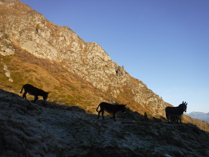 Tourenbeginn um 07:20 Uhr bei 2°C unter aufklarenden Himmel. Die nordseitigen Passagen waren stark mit Rauhreif beschickt. Das machte die Passagen über Geröll und an steilen Stellen zum westlichen Verbindungsgrat der Cima Marsicce rutschig.