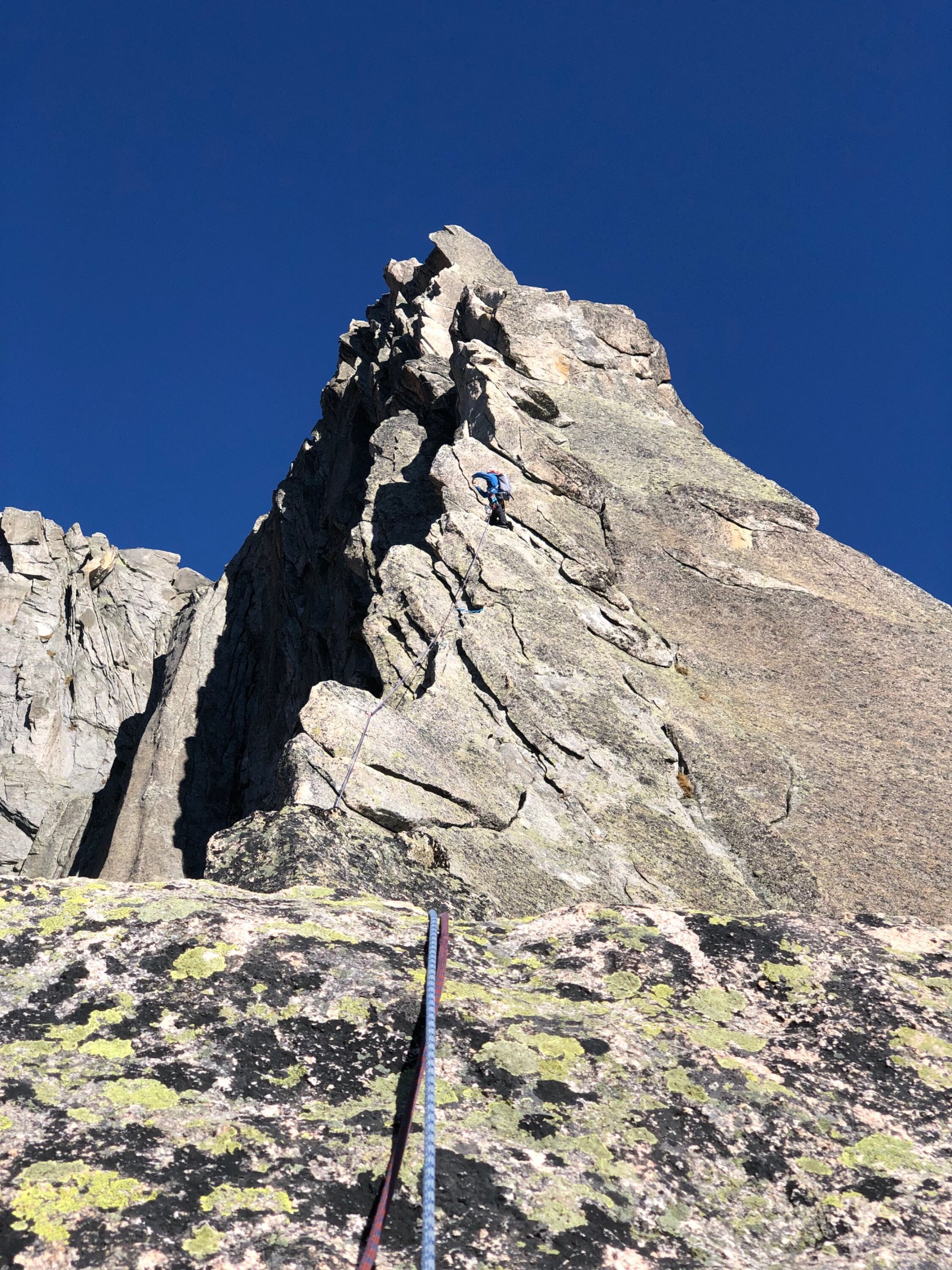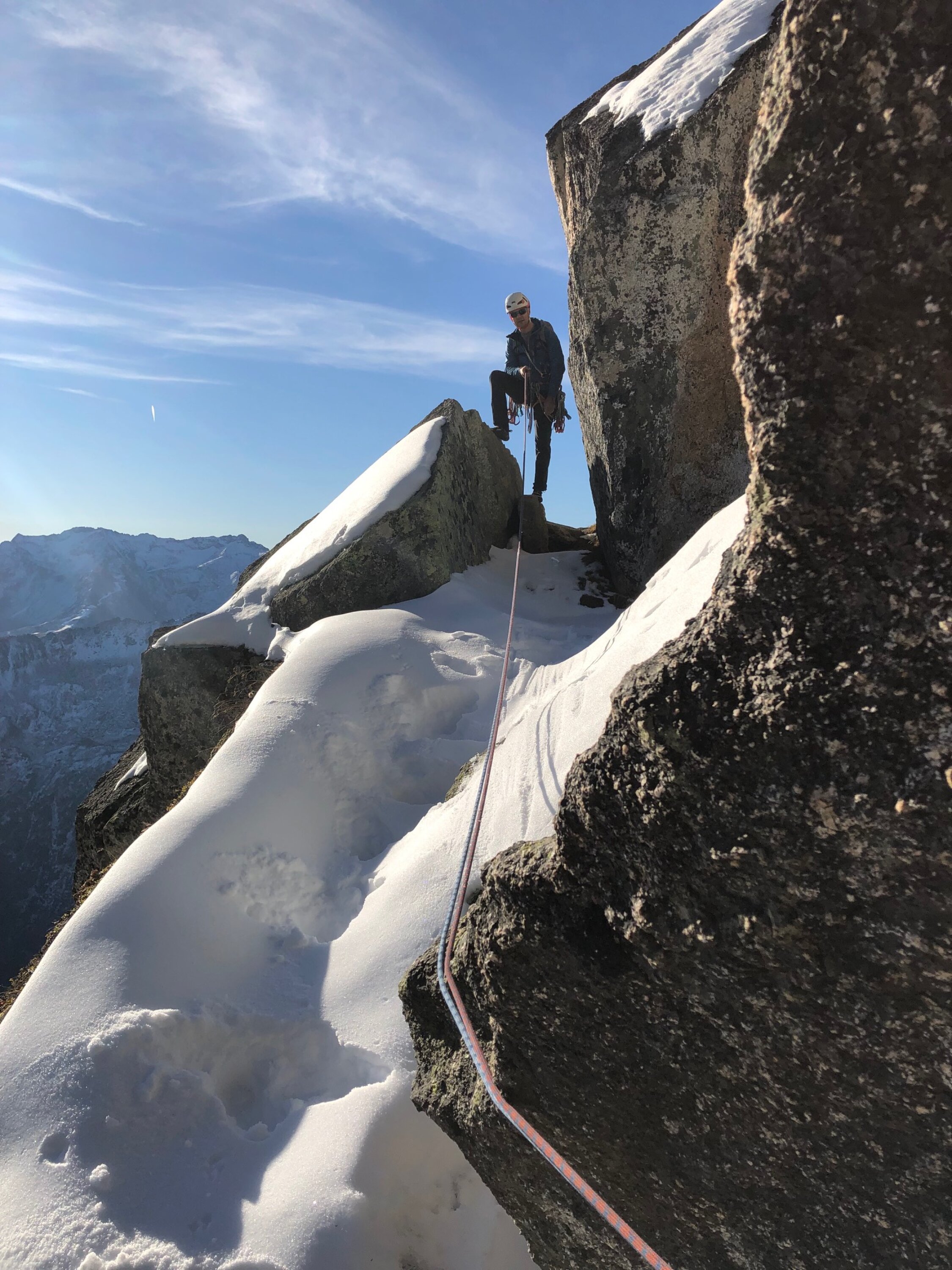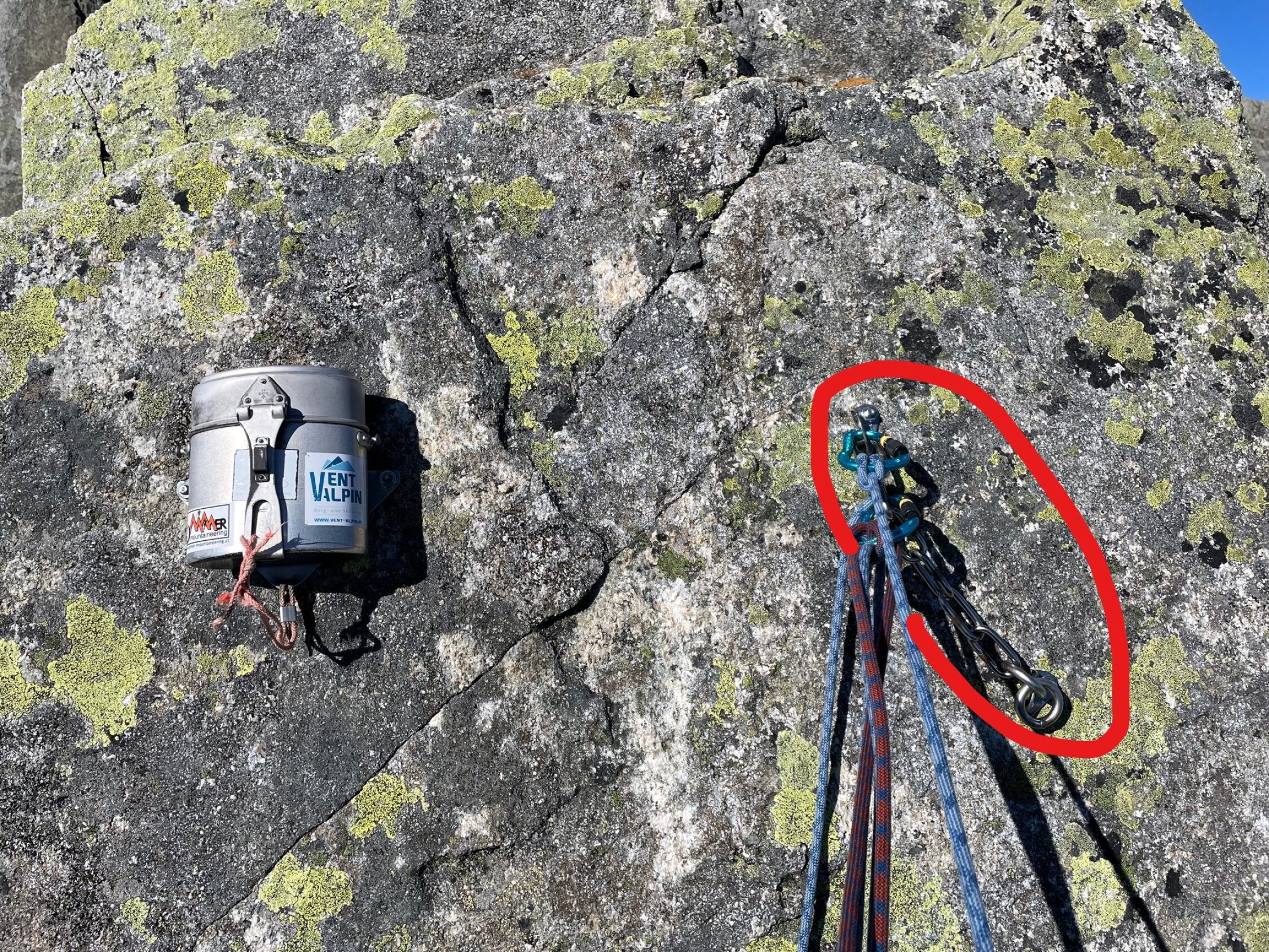 Wir haben vom Zwillingsturm abgeseilt, da der nordseitige Normalweg im Abstieg aktuell nicht zu empfehlen ist.