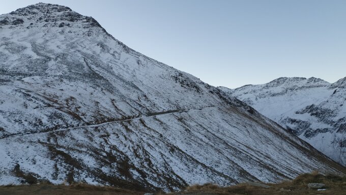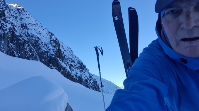 Gebe zu die Ski mitzunehmen ist etwas exotisch. Erstaunlicherweise bereits gute Schneeverhältnisse angetroffen. Militärstrasse Ski aufgebunden und beim Aufstiegab Höhe 2520 - mittig - gelaufen bereits durchgehende Schneedecke. Ab Gletschersee dann merklich mehr Schnee. Fortsetzung des Aufstiegs auf dem Gletscher bis etwas unterhalb des Bergschrundes. Dann , da ich alleine unterwegs war, Tour hier abgebrochen. Teilweise neu gespurt und je weiter oben mehr "Wühlschnee". Abfahrt dann erstaunlich gut , oben nur in der obersten Schicht leicht Windharsch aber sehr gut drehbar. Weiter unten bis zum Gletscherschnee praktisch pulverschnee...Der half dann auch unterhalb des Gletschersees die Abfahrt langsam und vorsichtig forzusetzen und somit den Steinkontakt auf dem Minimum zu halten. Meine Skis haben es ohne "tiefen" Kratzer am Belag und Kante überstanden. Ab Höhe 2570 dann Ski aufschnallen und zu Fuss retour.