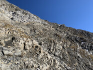 Nachdem ich zweimal innerhalb einer Stunde Steinschlag in nächster Nähe beobachtet hatte (einmal sind kopfgrosse Steine über die lange Querung heruntergefallen), hat mich die Motivation verlassen.