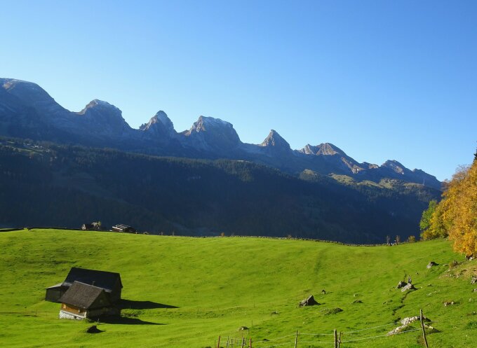 Wir haben die hier beschriebene Route mit Aufstieg über die Chrinn zum Gräppelensee gemacht. Abstieg dann zum Schlofstein und südwestlich um den Schwendigrat herum zurück nach Scharten.