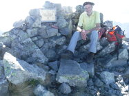 Im Aufstieg kam mir unterhalb vom Gipfel eine Berggängerin entgegen. Nach mir folgten 4 Wanderer. Am Gipfel-Steinmann gibt es einen rustikalen Blechkasten, in dem sich nicht bloß eine Schatulle mit dem Gipfelbuch befindet. Sondern auch, je nach Ablage, ein Pfund-Hammer. In, oder vor der Box. Denn der Hammer dient wohl inzwischen nur noch, um den verklemmten Riegel der Box von unten nach oben aufzuschlagen. Das kleine schwarze Gipfelbuch ist vom 17.8.2020 und zu 1/3 beschrieben.