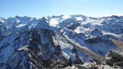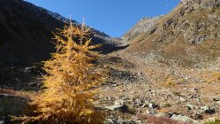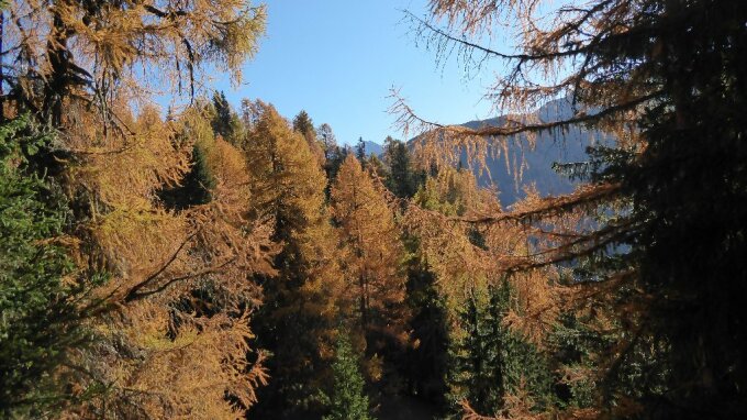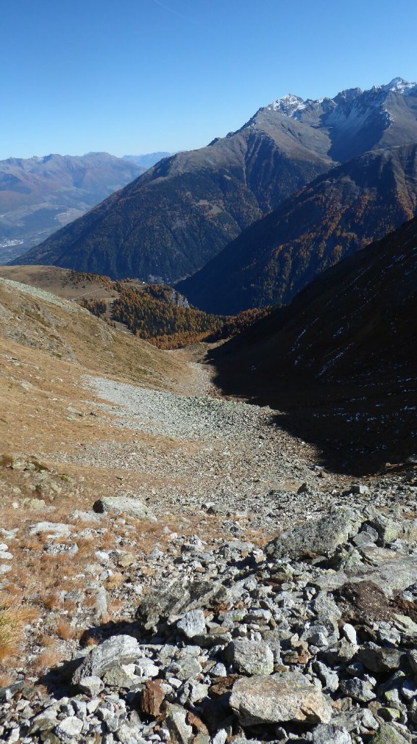 Traumwetter durch herrlichen Lärchenwald auf trockenem Weg17 zur Fukelhütte. Weiter trocken auf Weg20. Dann wegloser Anstieg durch Furkeltal in Furkelscharte auch dies konnte fast Schneefrei erreicht werden. Der S-Grat trocken bis oben, bei Nässe vermutlich heikel. Der Weiterweg über Fallaschkopf bis Fallaschjoch, war dann schon recht anspruchsvoll. Zum Glück hatte ich eine alte Spur in den Schneepassagen gefunden, denn die Markierungen waren nur noch sporadisch zu sehen. Rest via Weg25 wieder zurück zur Furkelhütte und Trafoi wie gehabt.