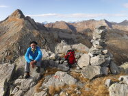 Auf dem Pizzo Porcareccio hat sich der unbekannte, bergsteigende, tessiner Künstler verewigt mit seinem kleinen orangenen Herzchen auf dem Felsstein neben der Steinpyramide.