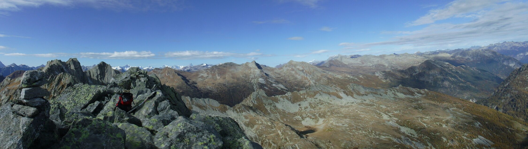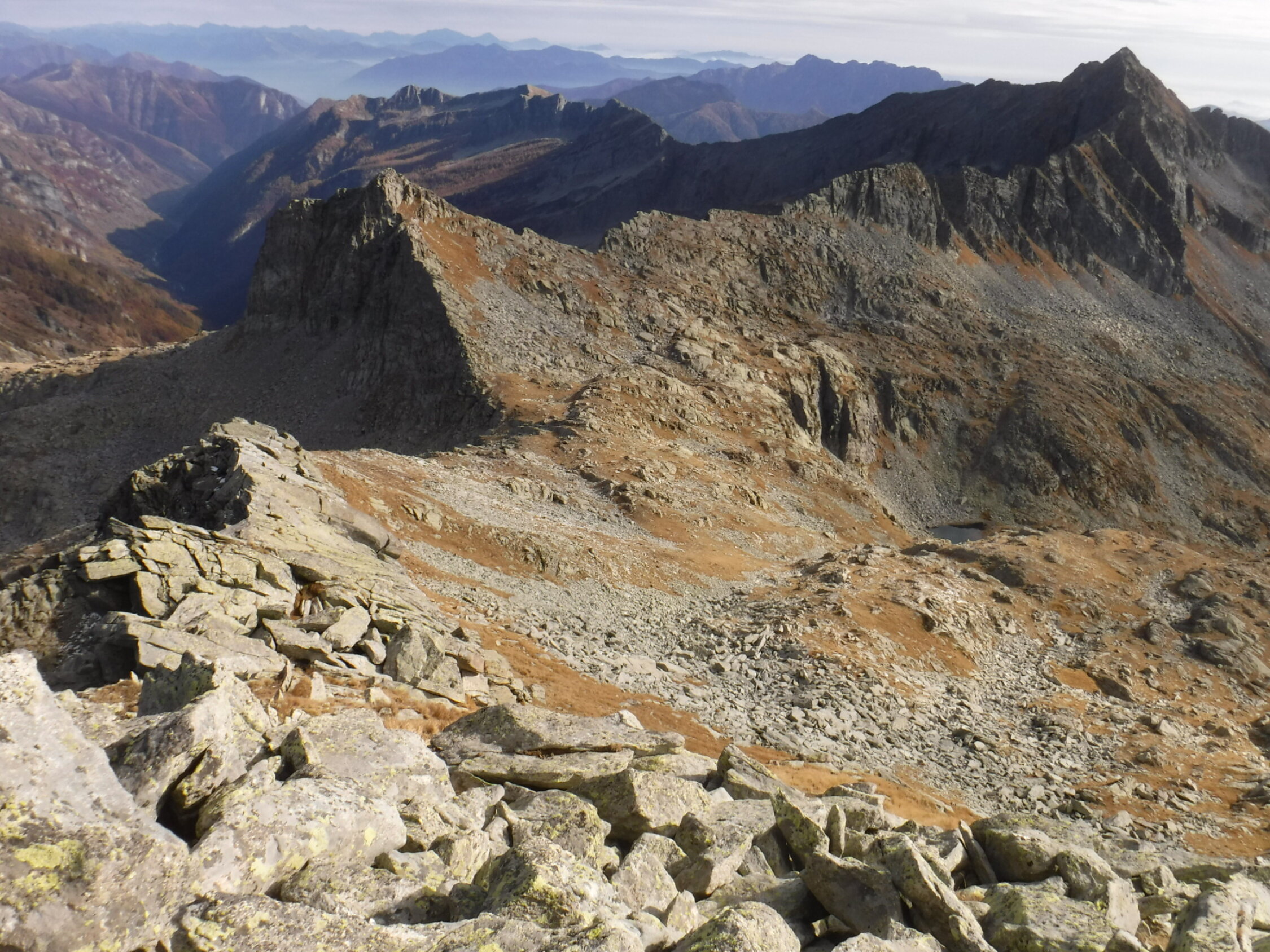 Vom P 2562 blickt man zu den Alpen Gelato und di Sfii im Valle del Lago und nach Campo Vallemaggia im Valle di Campo. Vom Gipfel des Pizzo Porcareccio sieht man ins obere Valle di Vergeletto mit der Alpe Arena (Tessin).