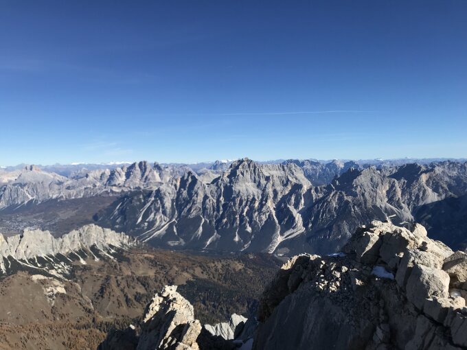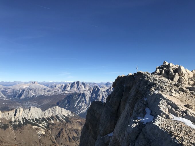 Grossartige Spätherbsttour auf einen prominenten Dolomitengipfel. Zu dieser Zeit sehr einsam, nur 3 Leute angetroffen. Zustieg vo der malga ciauta, welche über eine steile Asphaltstrasse von Vodo Cadore erreichbar ist (von Norden kommend praktischer als ein Start in Zoppe di Cadore).
