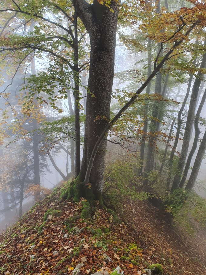 Unten im Wald sehr nass, weiter oben feucht und verwachsen, Route scheint nicht so oft begangen zu werden.