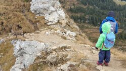 Sehr viele, zutrauliche jüngere Steinböcke am Weg