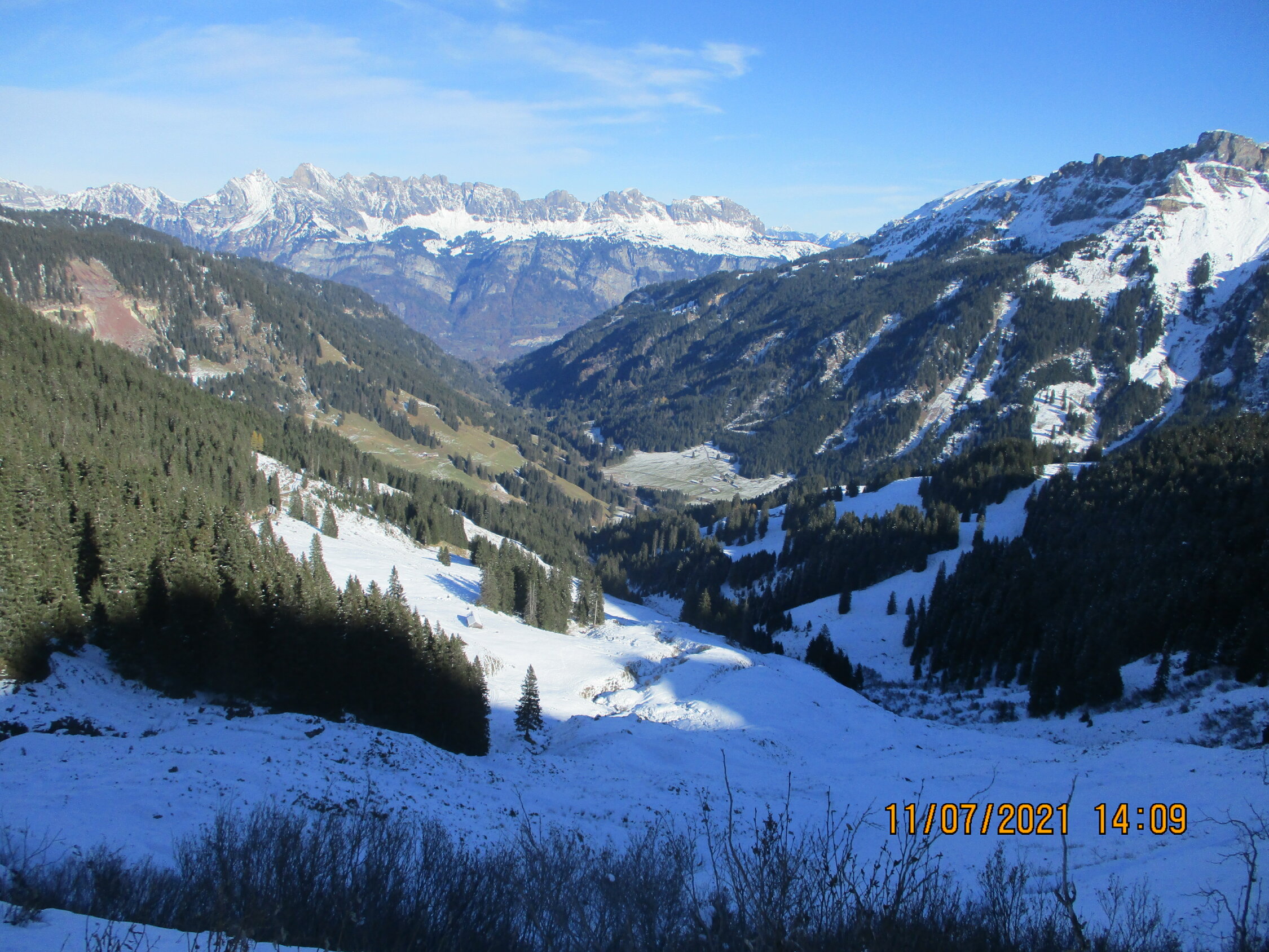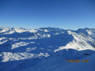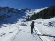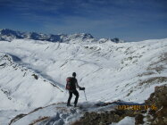 Der Übergang vom Fuße des Couloirs via Sommerroute zum Sattel zwischen Spitzmeilen und Wissmeilen erforderte das Abziehen der Schneeschuhe, ließ sich dann zu Fuß aber ganz ordentlich bewerkstelligen. Weiter nun zum Gipfel des Wissmeilen (2483 m). Abstieg durch die steile, mit herrlichem Pulver gefüllte Nordostflanke und Rückkehr via Spitzmeilenhütte ins Schilstal.