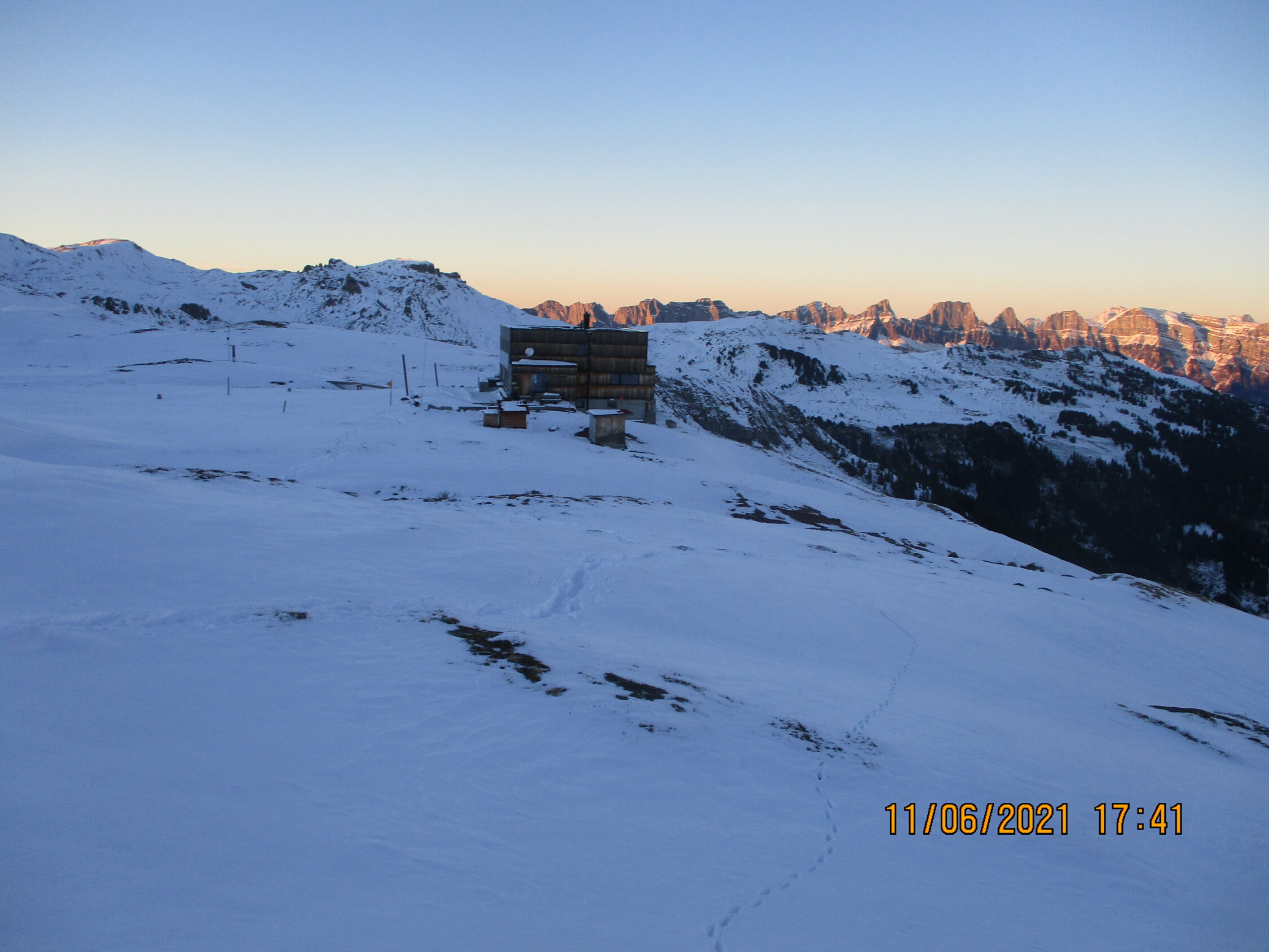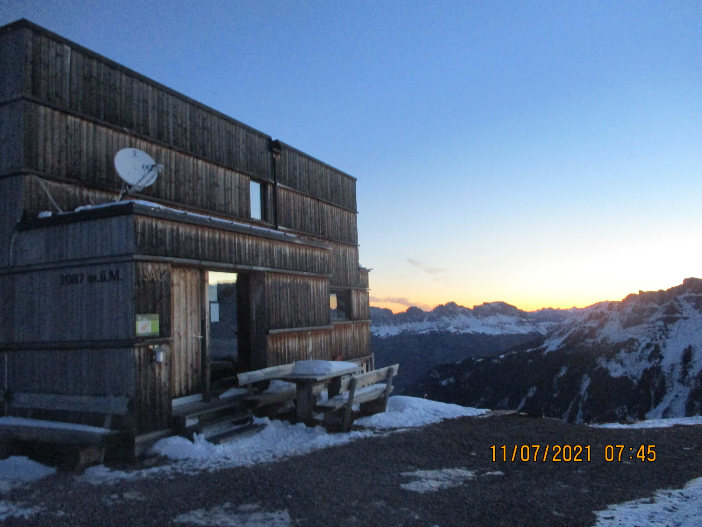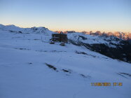 Angenehme Übernachtung im Winterraum der Spitzmeilenhütte. Anmeldung obligatorisch! Am frühen Abend tauchte ein Fuchs vor der Hüttentür auf.