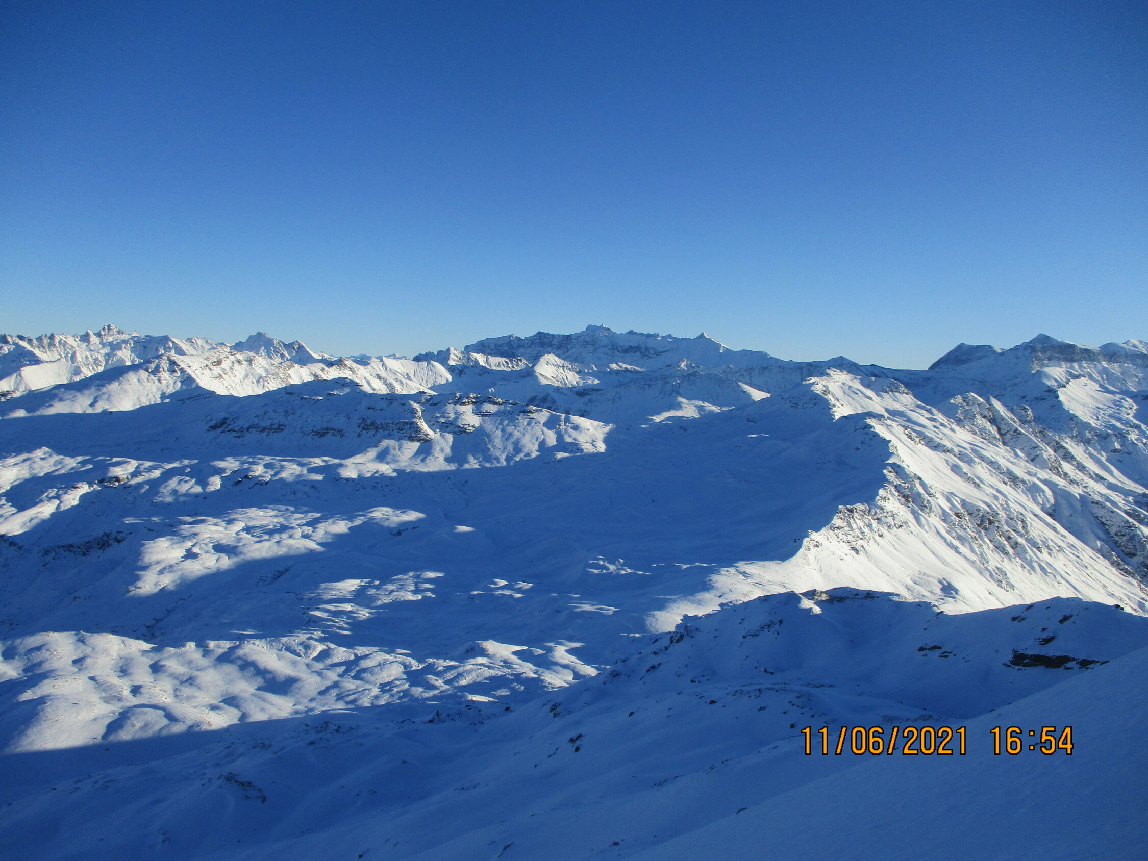 In den höheren Lagen gut schon ca. 50 cm Schnee, pulvrig, mit Sonnenexosition aber zusehends nass werdend. Schneeverteilung durch Windeinwirkung oft inhomogen.