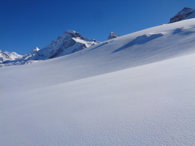 Aufstieg und Abfahrt: Besser kanns nicht mehr sein. Unverblasener und leichter Pulverschnee 20cm bis 30cm waren auf dem Oberen Theodulgletscher!