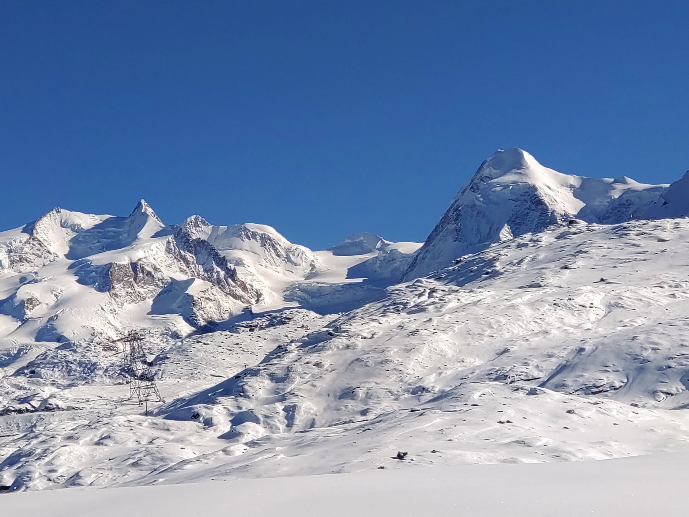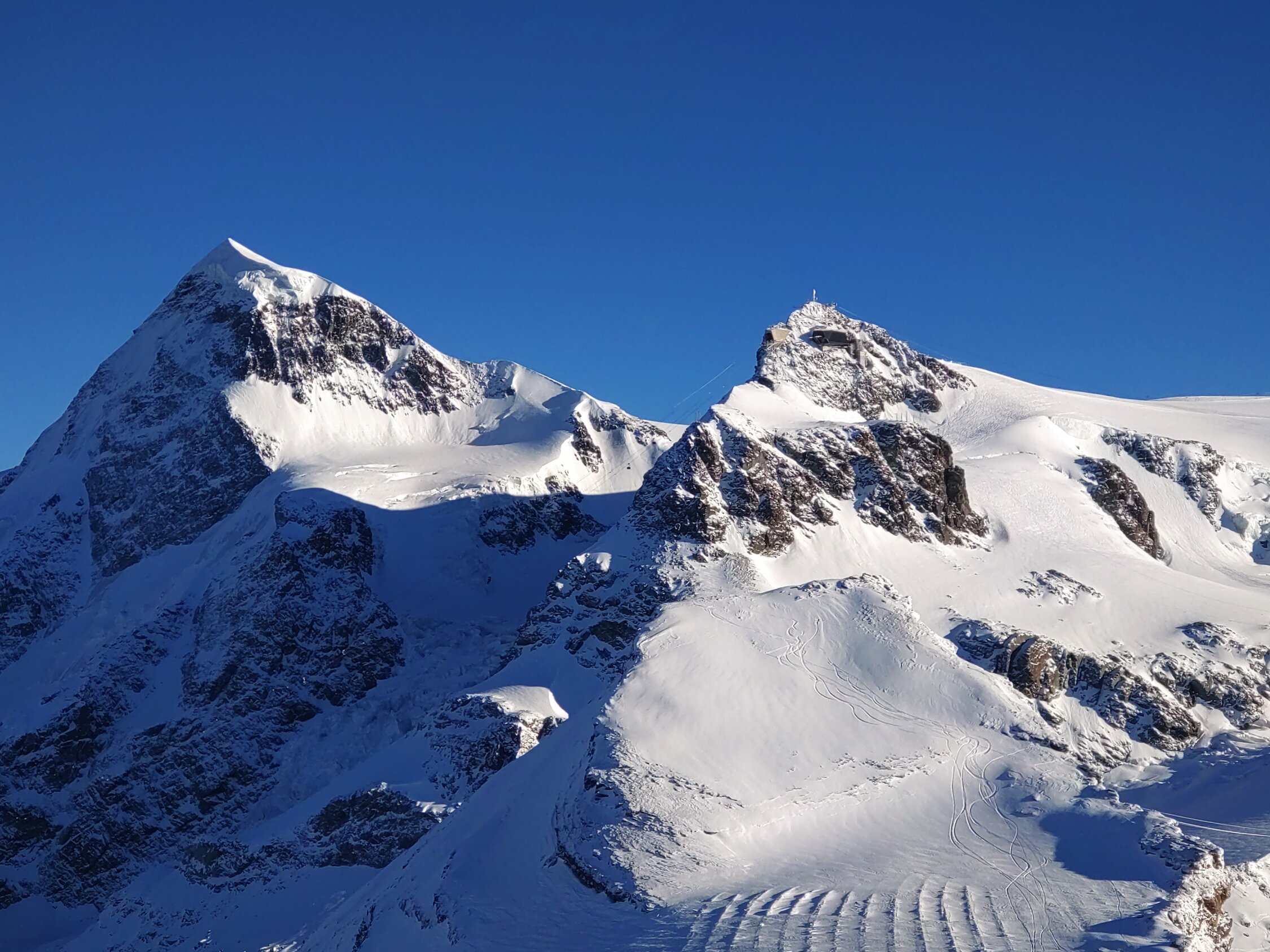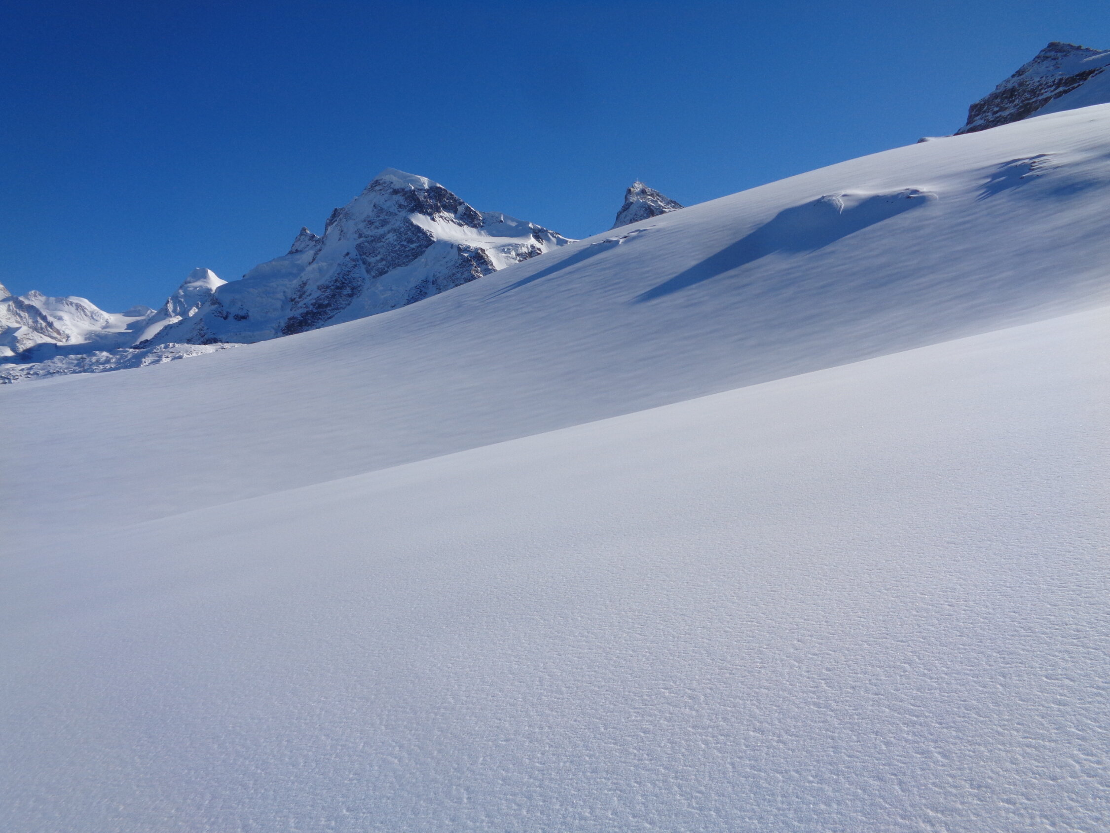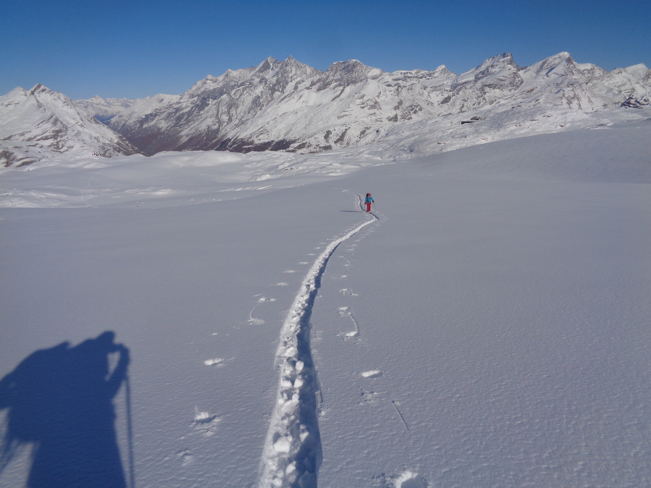 Vom Trockener Steg aus führte die Skiroute über den oberen Theodulgletscher, und die Nordostflanke aufs Furgghorn 3451m Dieser Berg bietet ein traumhaftes Bergpanorama das man nicht beschreiben kann. Ein unendliches Gipfelmeer breitet sich vor den Augen des Alpinisten aus. Einfach nur staunen und danken!