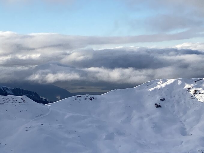 Kurzes Schneetraining. Durchgehende Piste, pulvrig hart. Einzelne gut sichtbare Steine nur auf den letzten 200m vor der Molseralp. Neben der Piste in den Nordhängen nach wir vor lockerer Pulver, das Gelände am Maschgenchamm braucht aber definitiv eine bessere Unterlage.