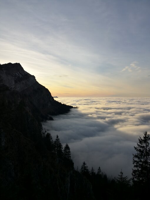 Als Fürobigtürli gemacht, Nebelobergrenze bei ca. 1500m. Wege fast trocken, im oberen 1/3 wenig Schnee, nicht gross störend.