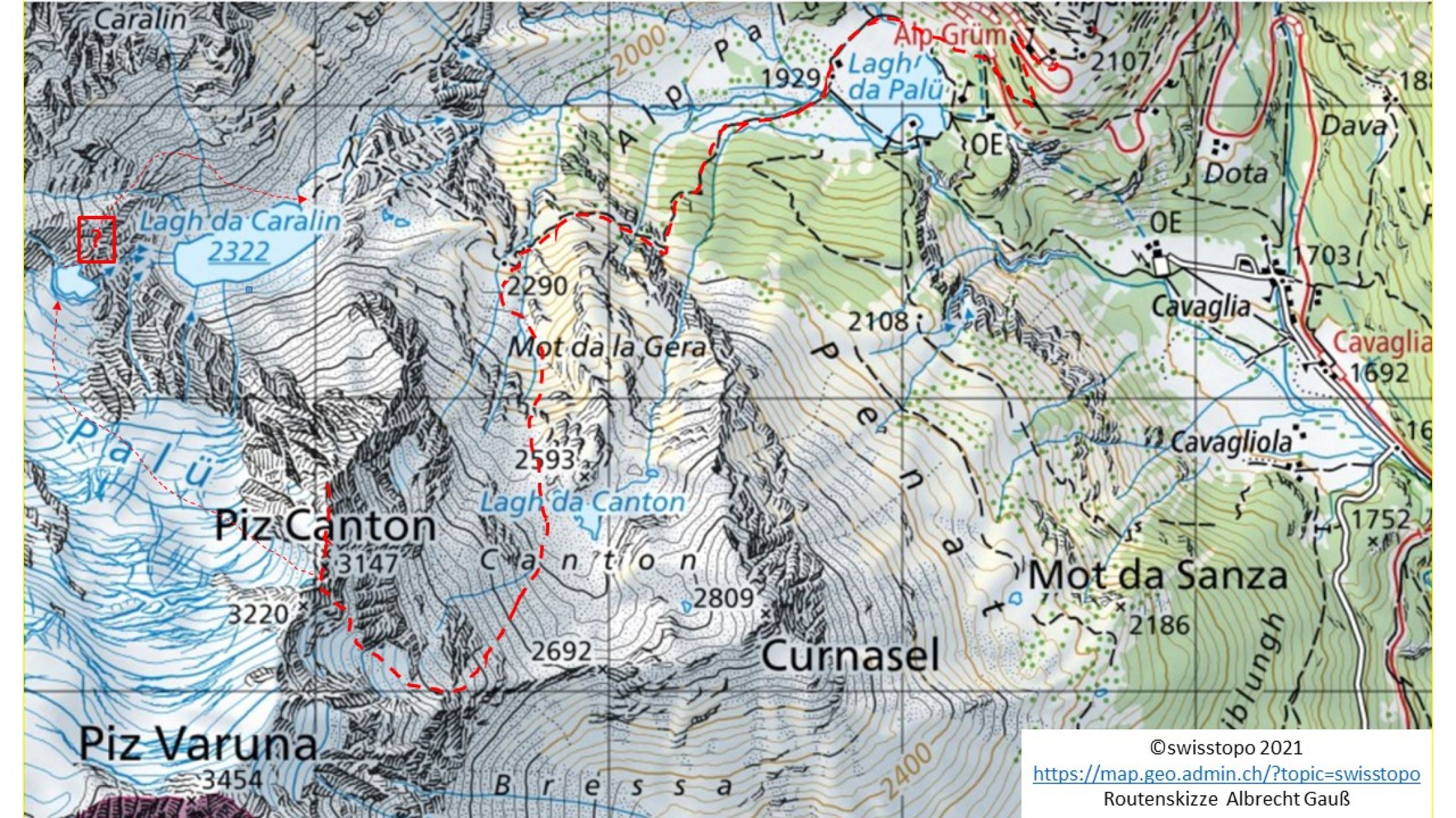 Von Alp Grüm in das Val da Canton und über die Ost- bzw. SO-Flanke und den S-Grat