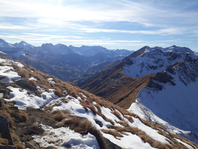 Sonnseitig fast überall trocken, nur ganz wenig matschige Stellen. Im Schatten Schnee, der aber gut begehbar ist, kein Eis. Schöne Rundtour mit tollen Ausblicken ins Kandertal, Simmental auf die Berner Alpen sowie Thuner- und Brienzersee.