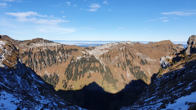 Wetter im Aufstieg unverhältnismässig warm für die Jahreszeit. Ab ca. 11 Uhr dann ein kälterer Westwind, aber immer noch sehr warm. Einige Personen waren in den kurzen Hosen unterwegs - T-Shirt-Wetter!