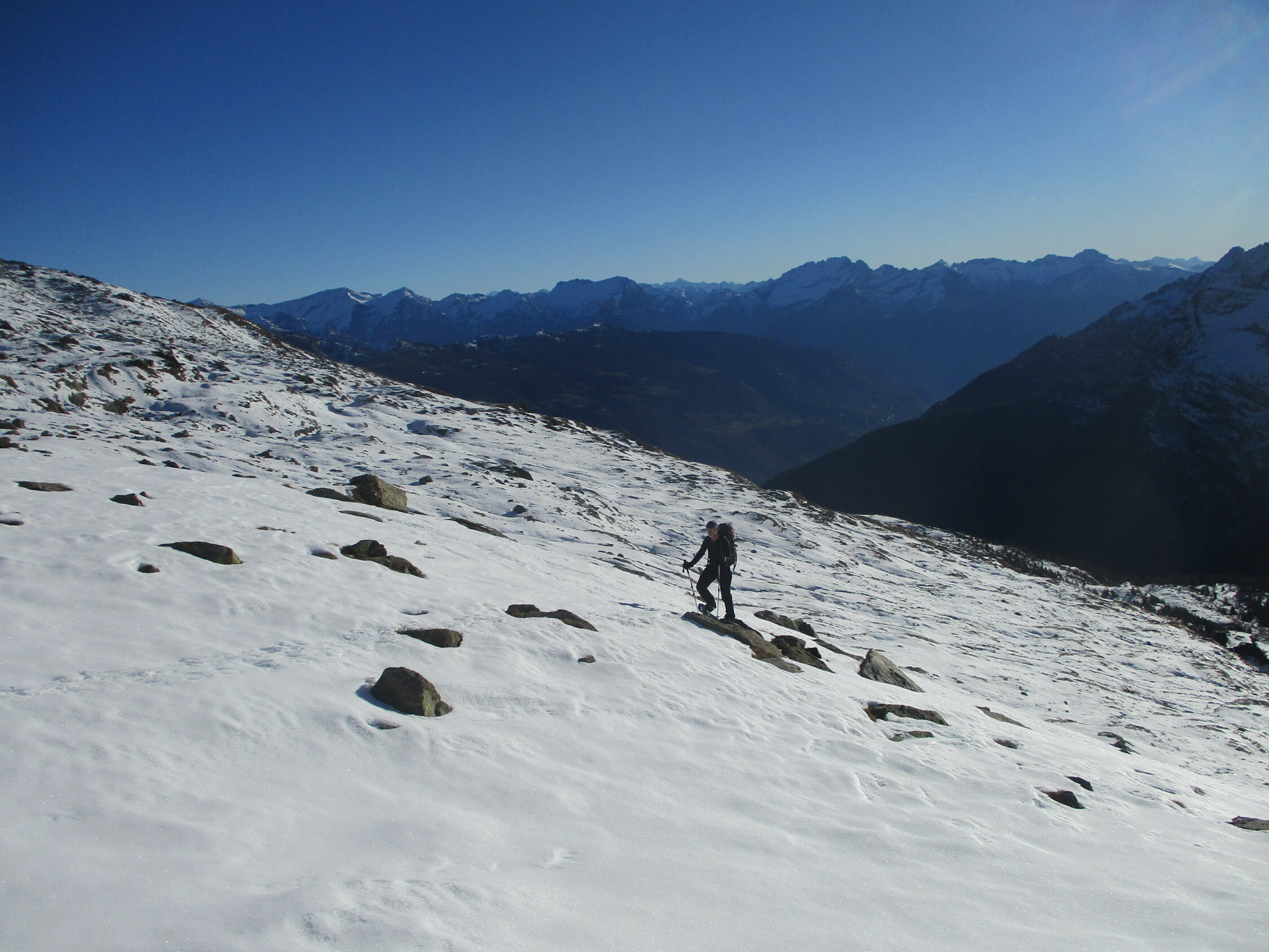 Exakt vor 14 Jahren und 10 Tagen stieg ich nach einsamer und kalter Nacht im Rifugio als Solist auf den Pizzo Forno. Es war wunderbar, jetzt mit Freunden und in einer warmen Hütte wieder hier gewesen zu sein :-)!