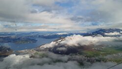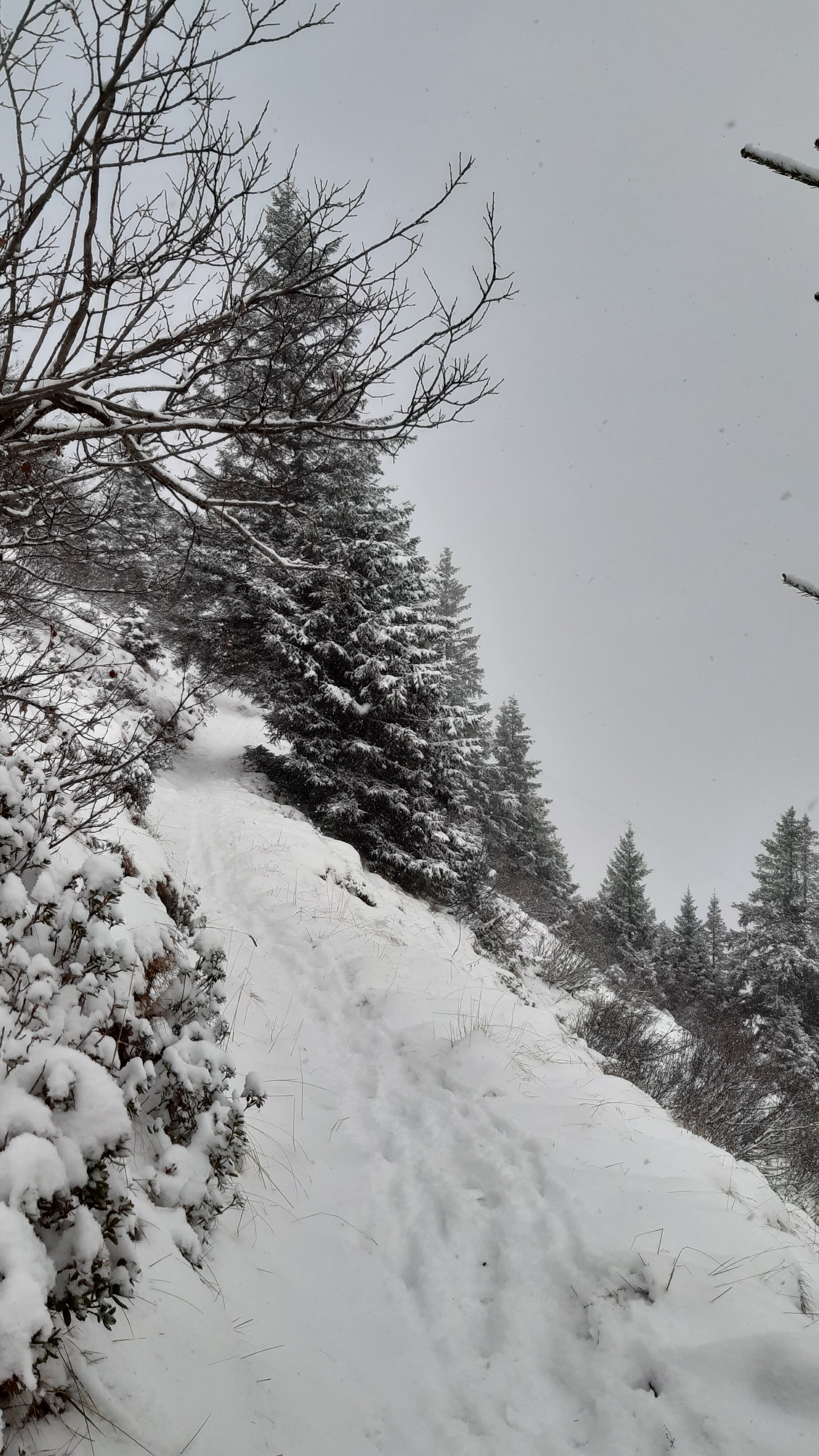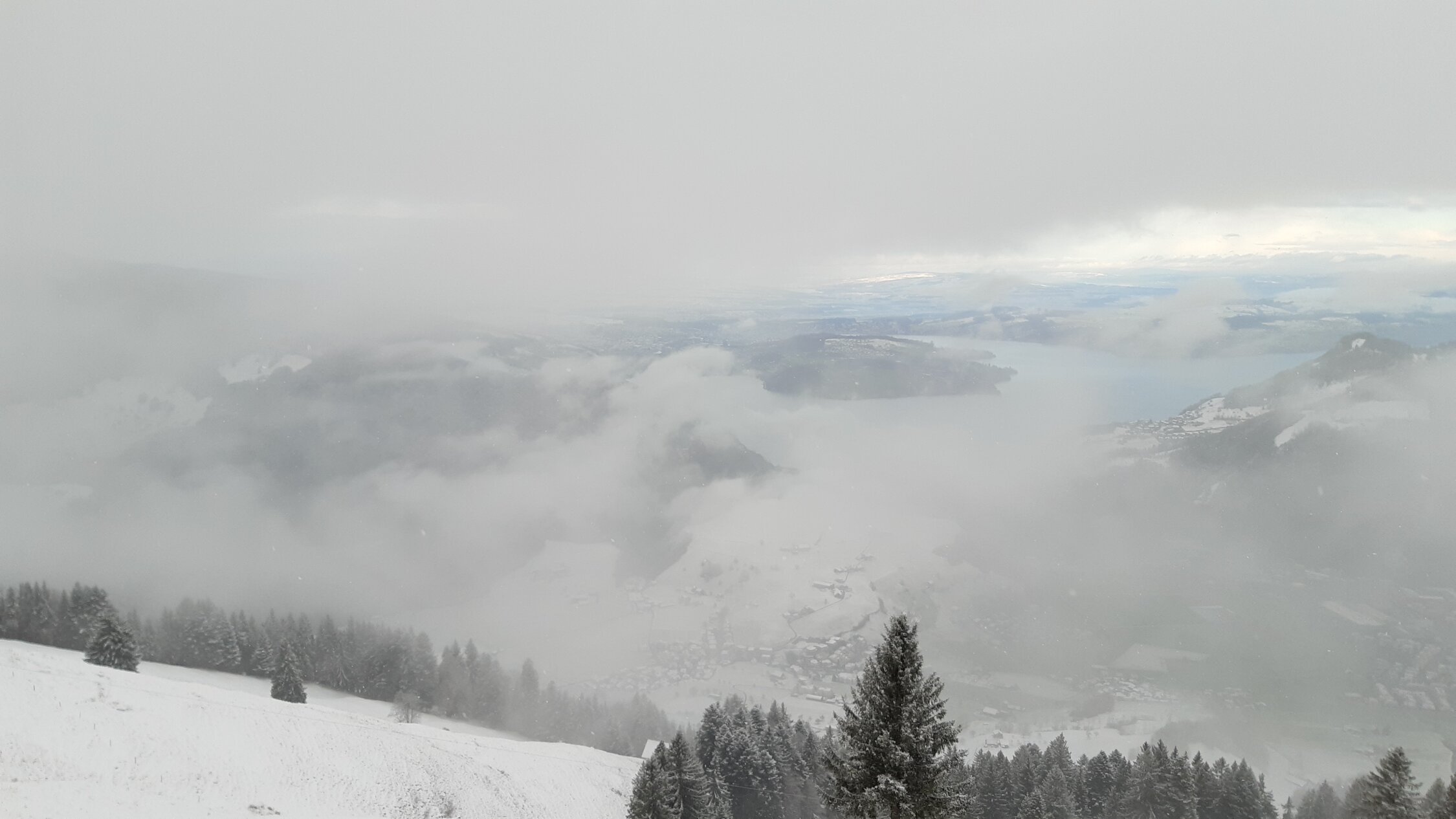 Beim loslaufen angezuckert und leicht zunehmend bis zum Gipfel. Eine tolle Zeit aufs Stanserhorn zu laufen, sehr wenig los, wir haben niemand (und auch keine Spuren) gesehen, kein Wind und mit leichtem Schneefall eine sehr friedliche Stimmung.