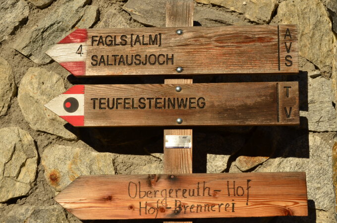 Von St. Martin Von St. Martin im Passeiertal auf Weg 4 vorbei am Basumkirk Schildhof weiter hinauf bis zur Beschilderung Teufelsteinweg. Der Weg ist ein zugeschütteter WWaalweg. Nach dem Teufelsstein geht es weiter vorbei am Matatzbach bis gegen haslach und nun auf Weg 3A zurück zum Ausgangspunkt.