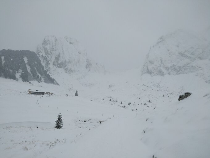 Für den Aufstieg genügend Schnee auf der Fahrstrasse bis Gustiberghütte.