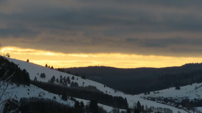 Ab Mittag einige Skifahrer bei der Abfahrt nach Bernau-Hof beobachtet. In der Schneise lief mir eine Gemse über den Weg.