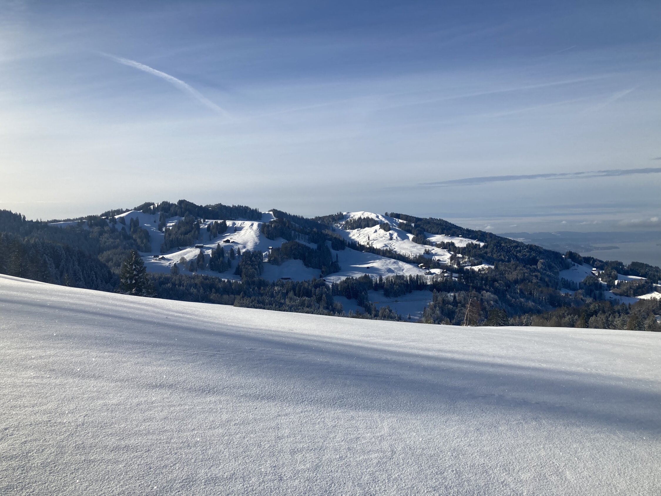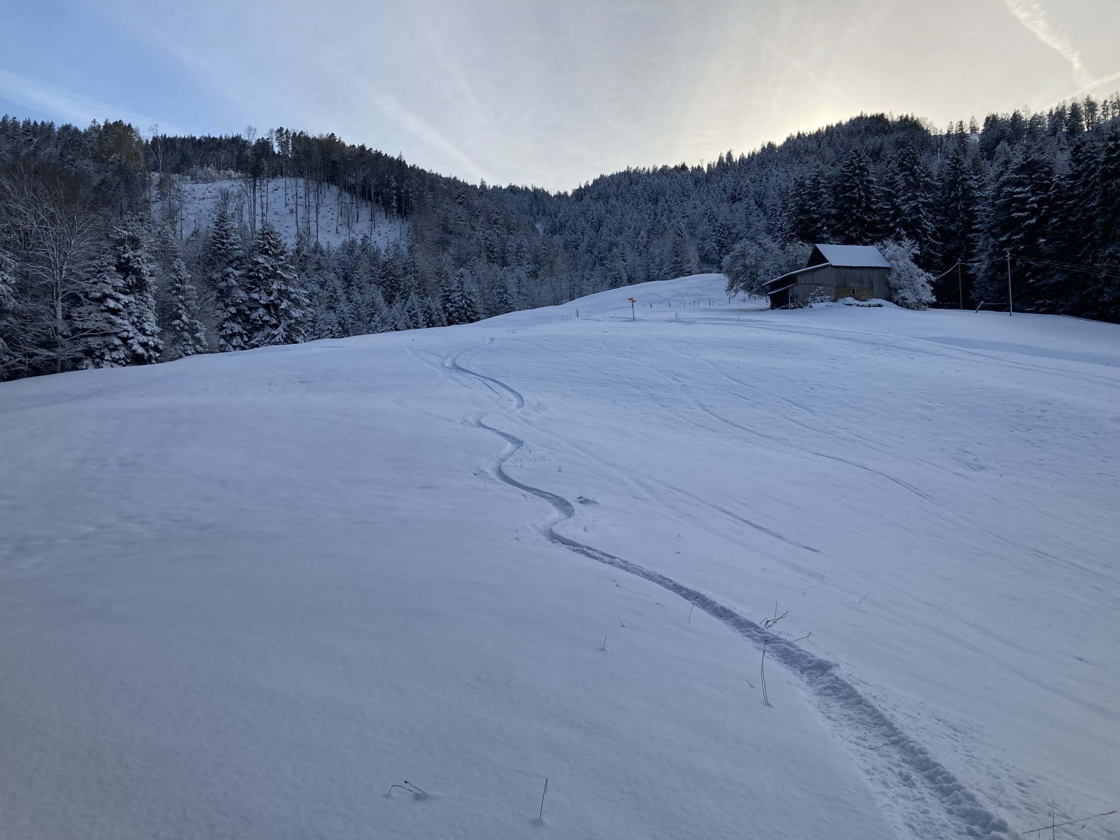 Auflage im ersten Hang hinauf nach Sennrüti sehr dünn. Ab Oberadelsrüti gut, nach dem Schöneggwald schöner Pulver auf bester Unterlage.