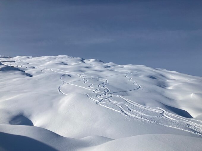 Schöner Auftakt in die Tourensaison 21/22. Traumhafte Verhältnisse mit viel Sonne, wenig Wind und federleichtem Pulverschnee von oben bis unten.
