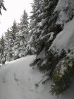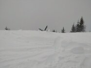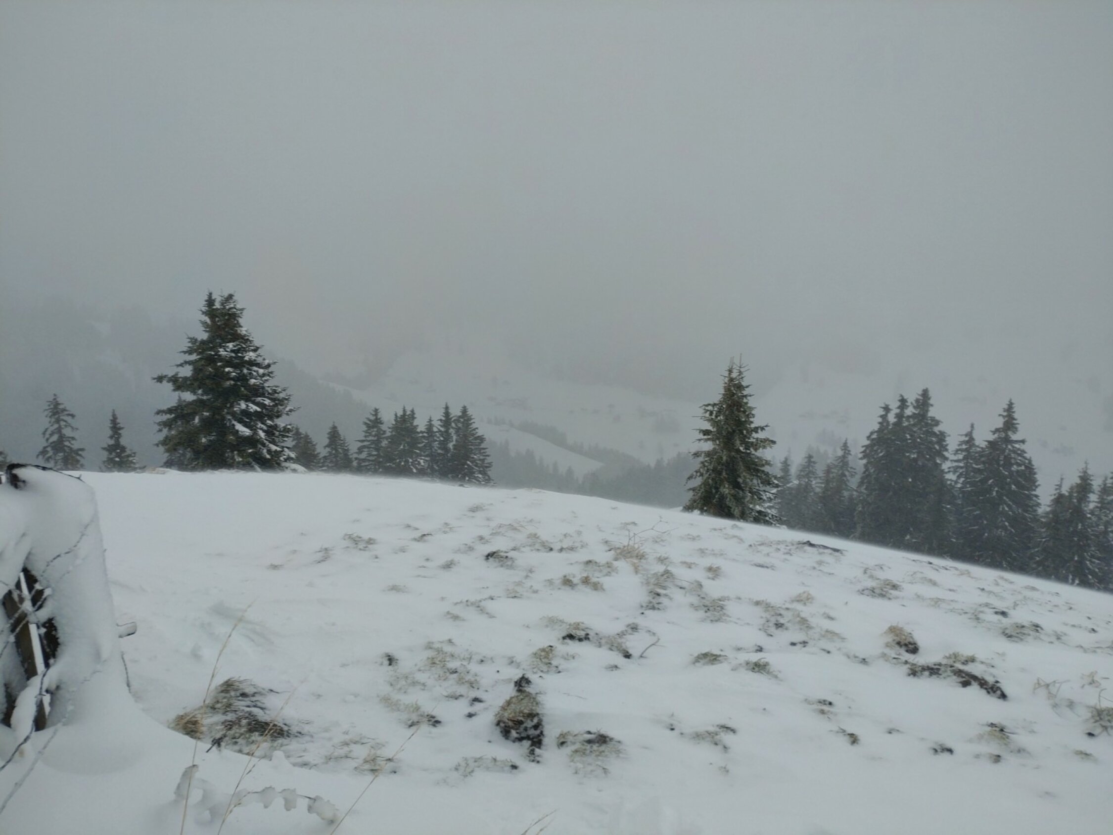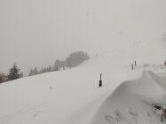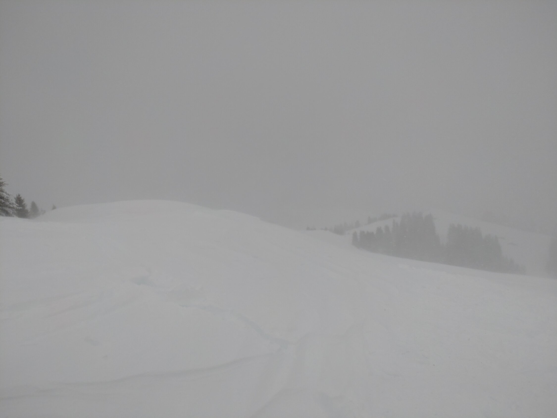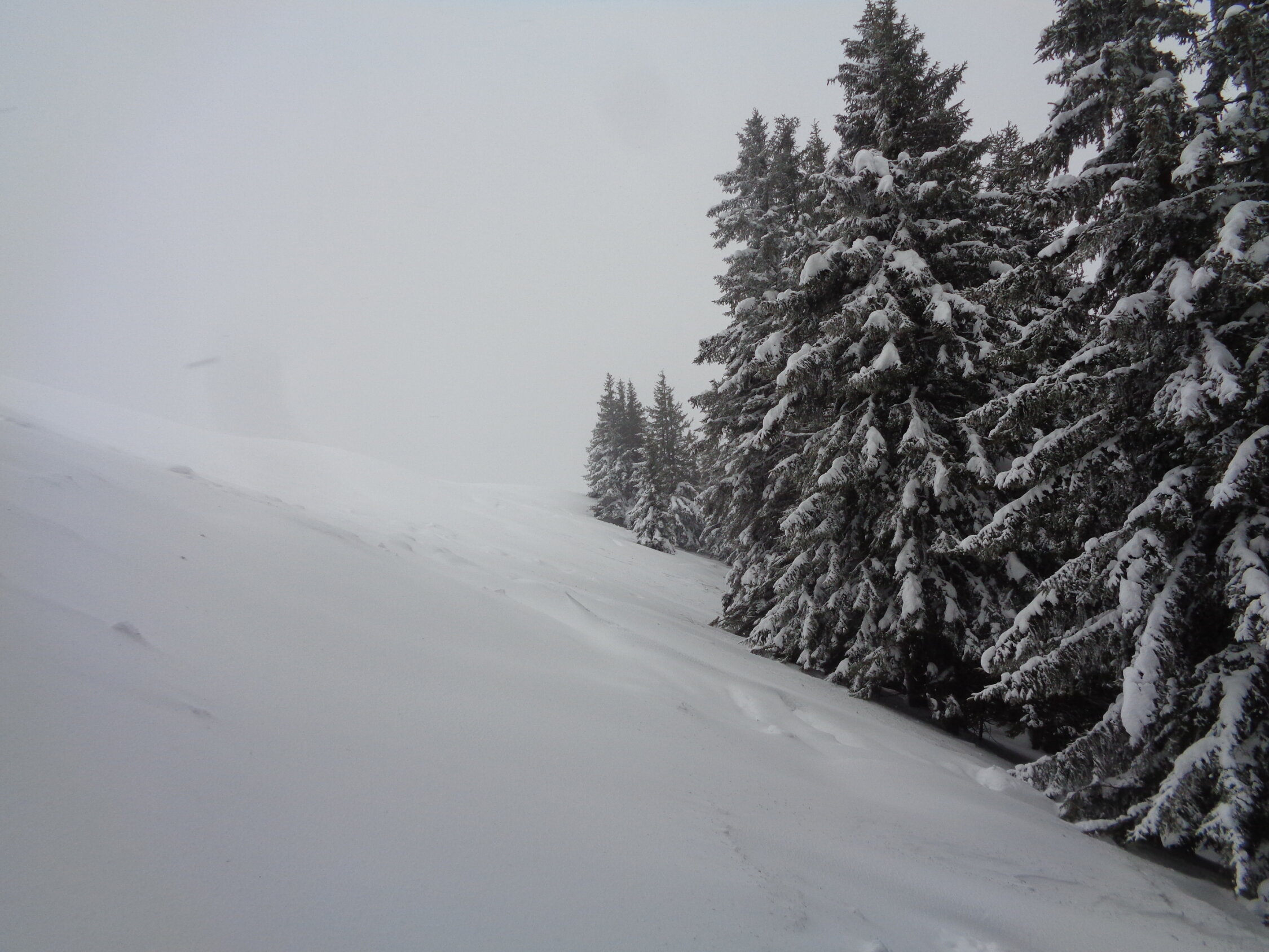 Die Schneehöhe betrug 20cm bis 50cm. Teilweise hatte es im oberen Drittel bis zu 80cm Schneeverwehungen. Die Gratrücken waren vom Wind her kahl gefegt. In den geschützten Partien und im Wald im oberen Teil teilweise Pulverschnee.