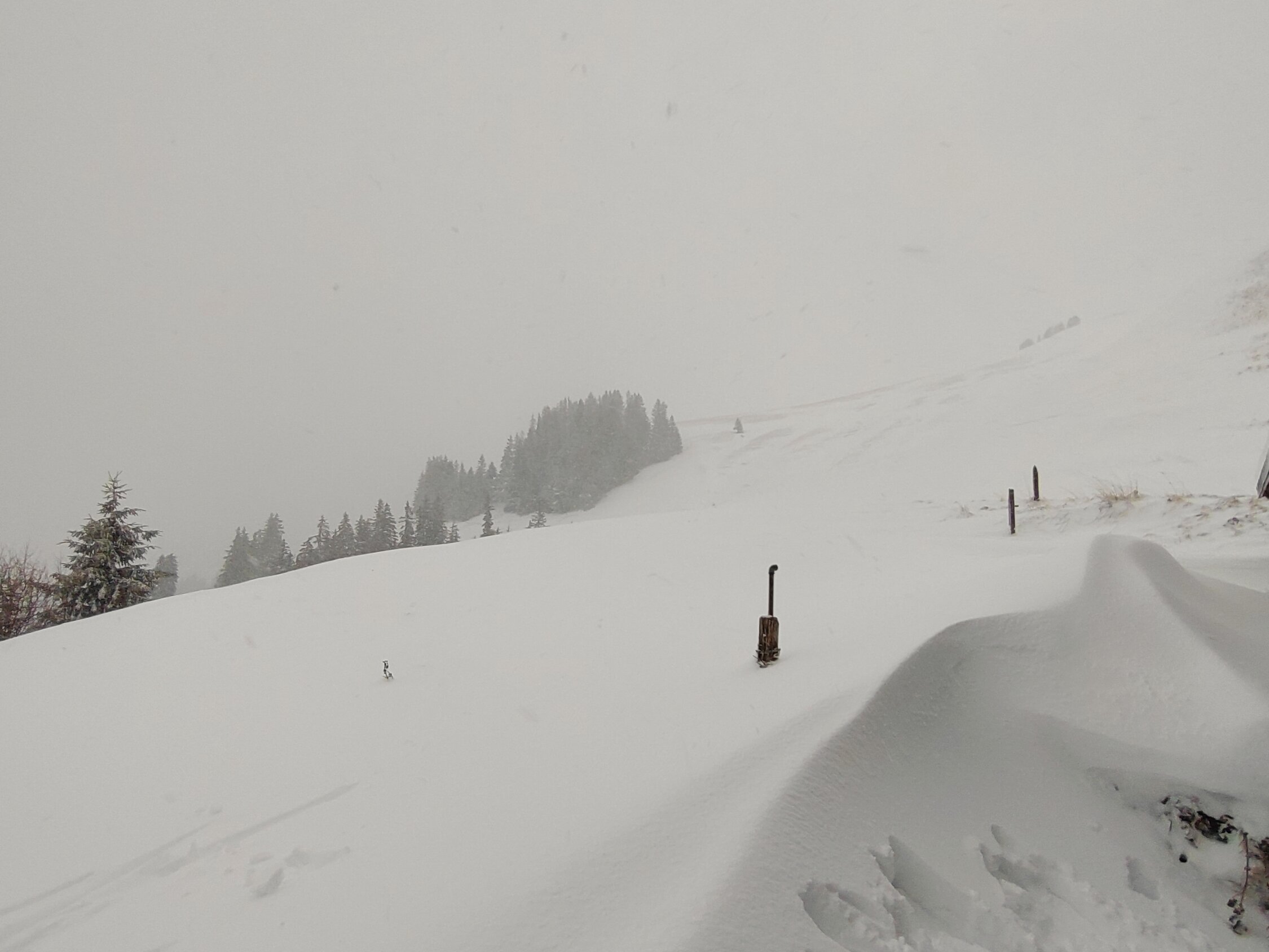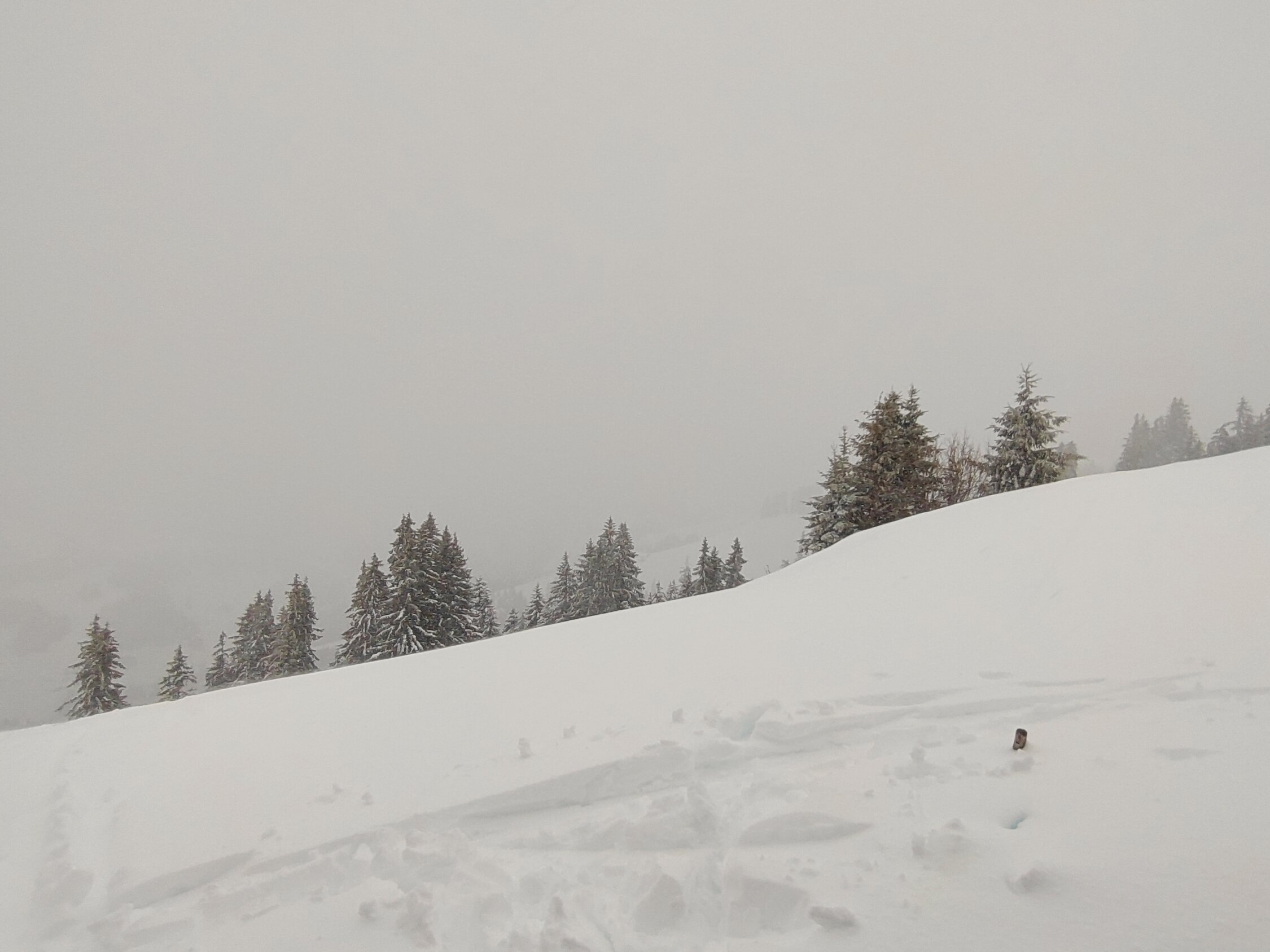Bei den weiteren Schneefällen neu beurteilen. Man beachte bei den Bildern das ausgelöste Schneebrett vom 3.Dezember 2021 unter der Alpe Fideritschi. Der Anriss ist wie abgefrässt. (Siehe Bilder)