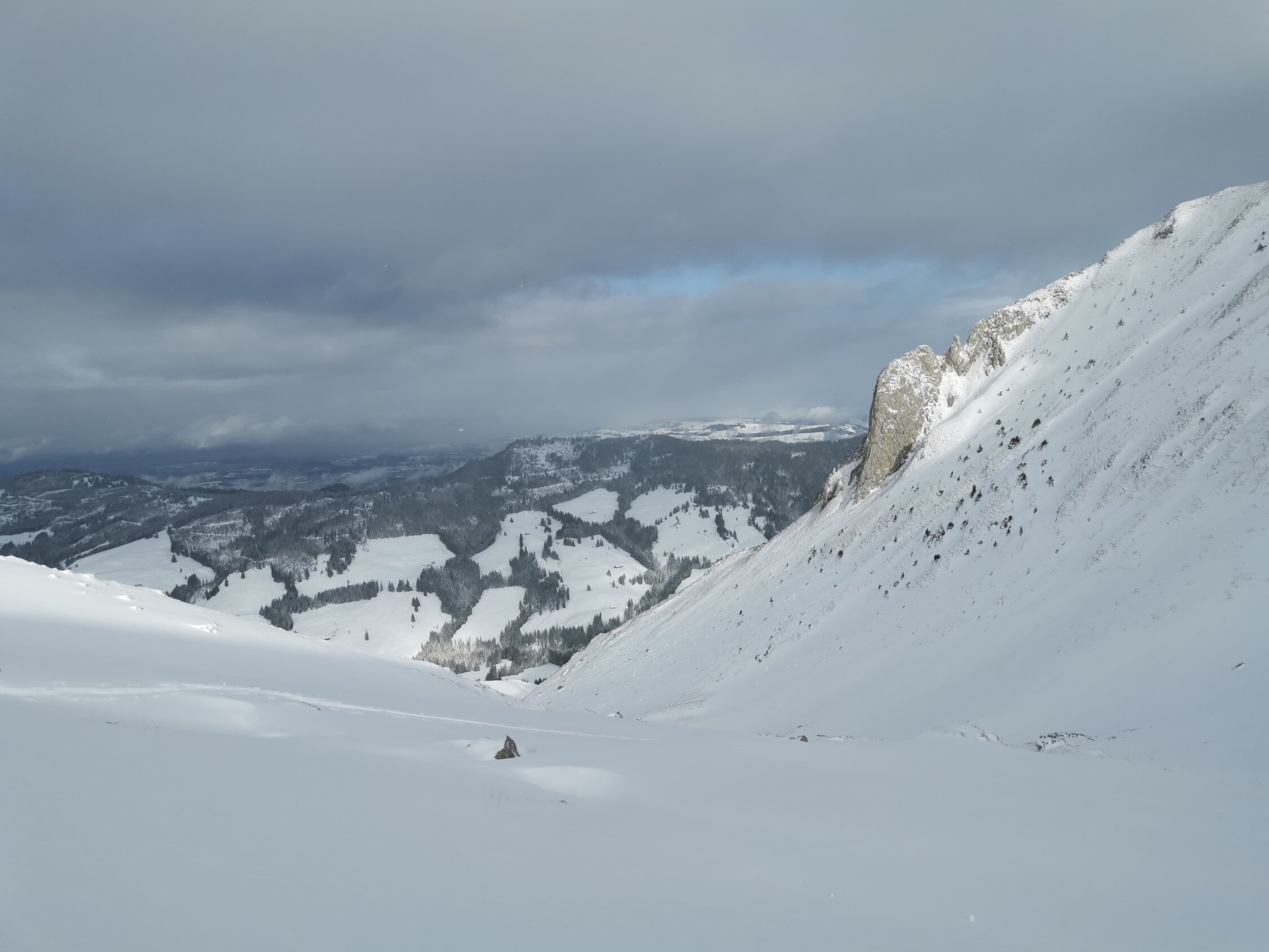 In den Mulden 10-20cm Pulver auf (unten knapp) tragender Unterlage. Sonst eisig und abgeblasen.