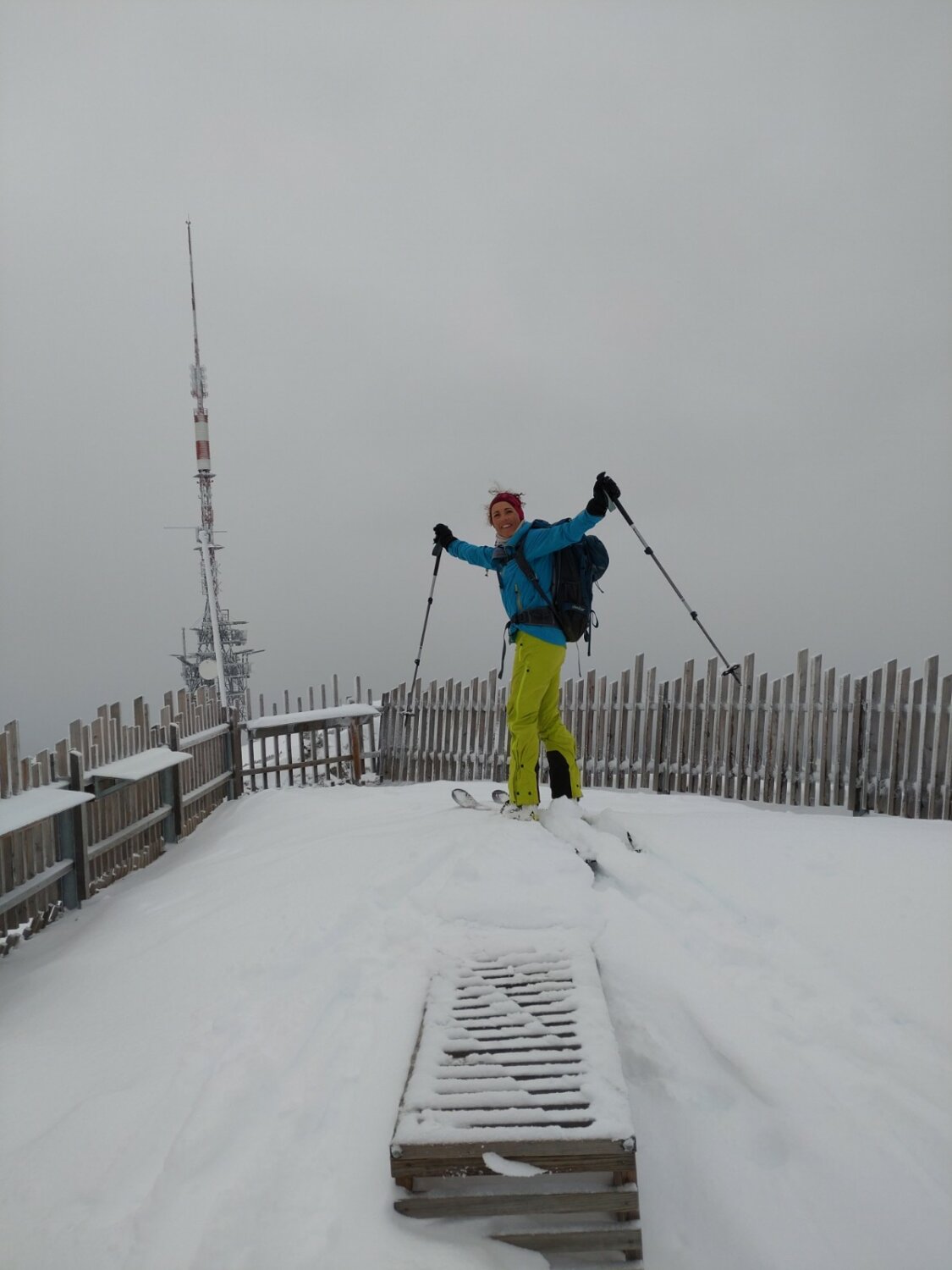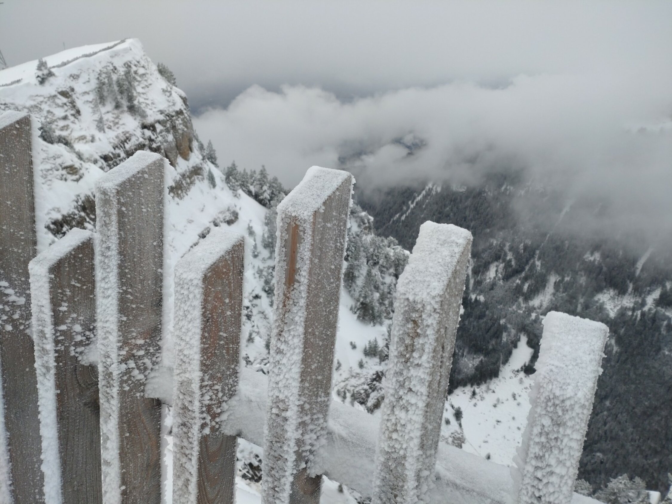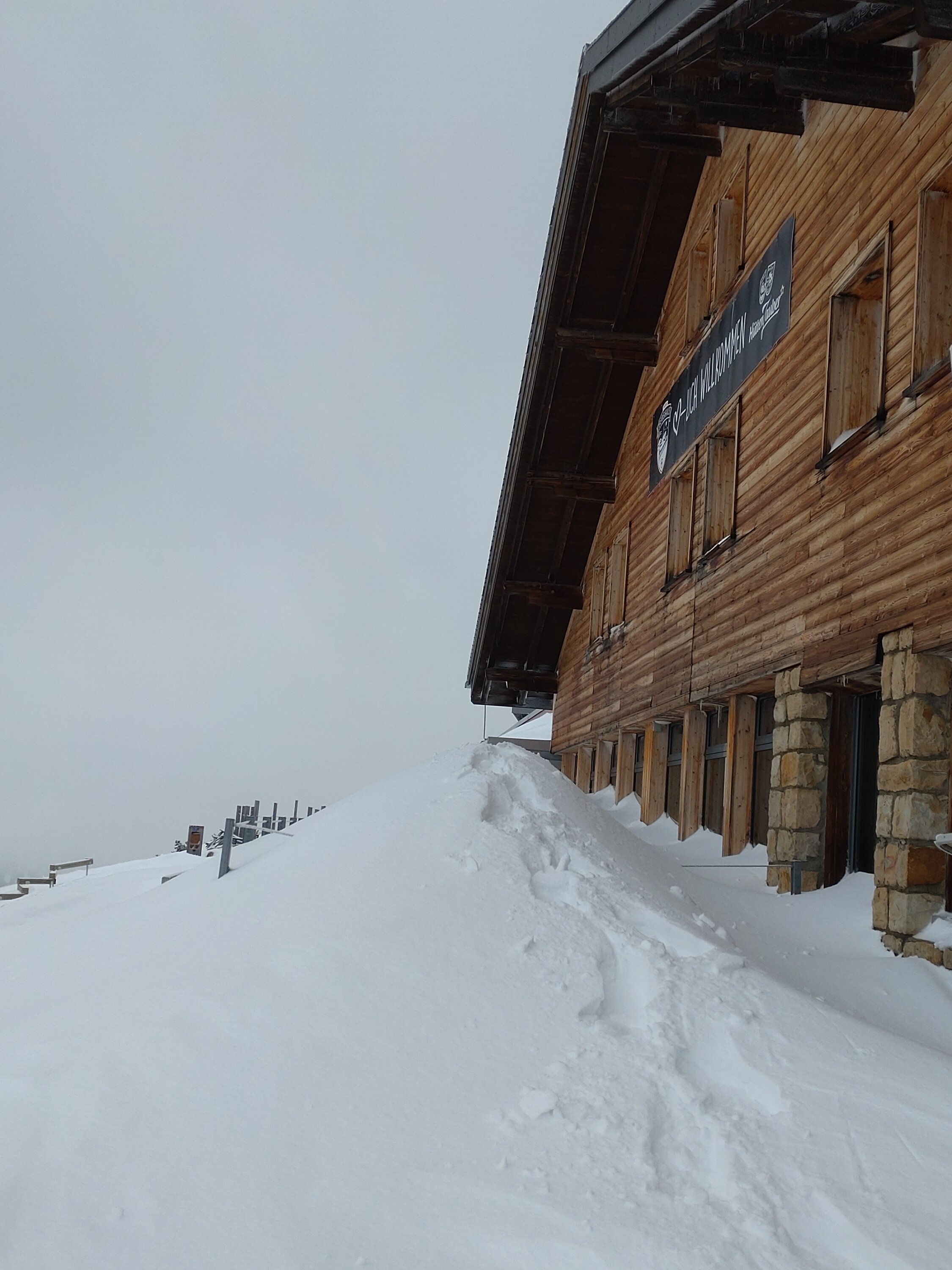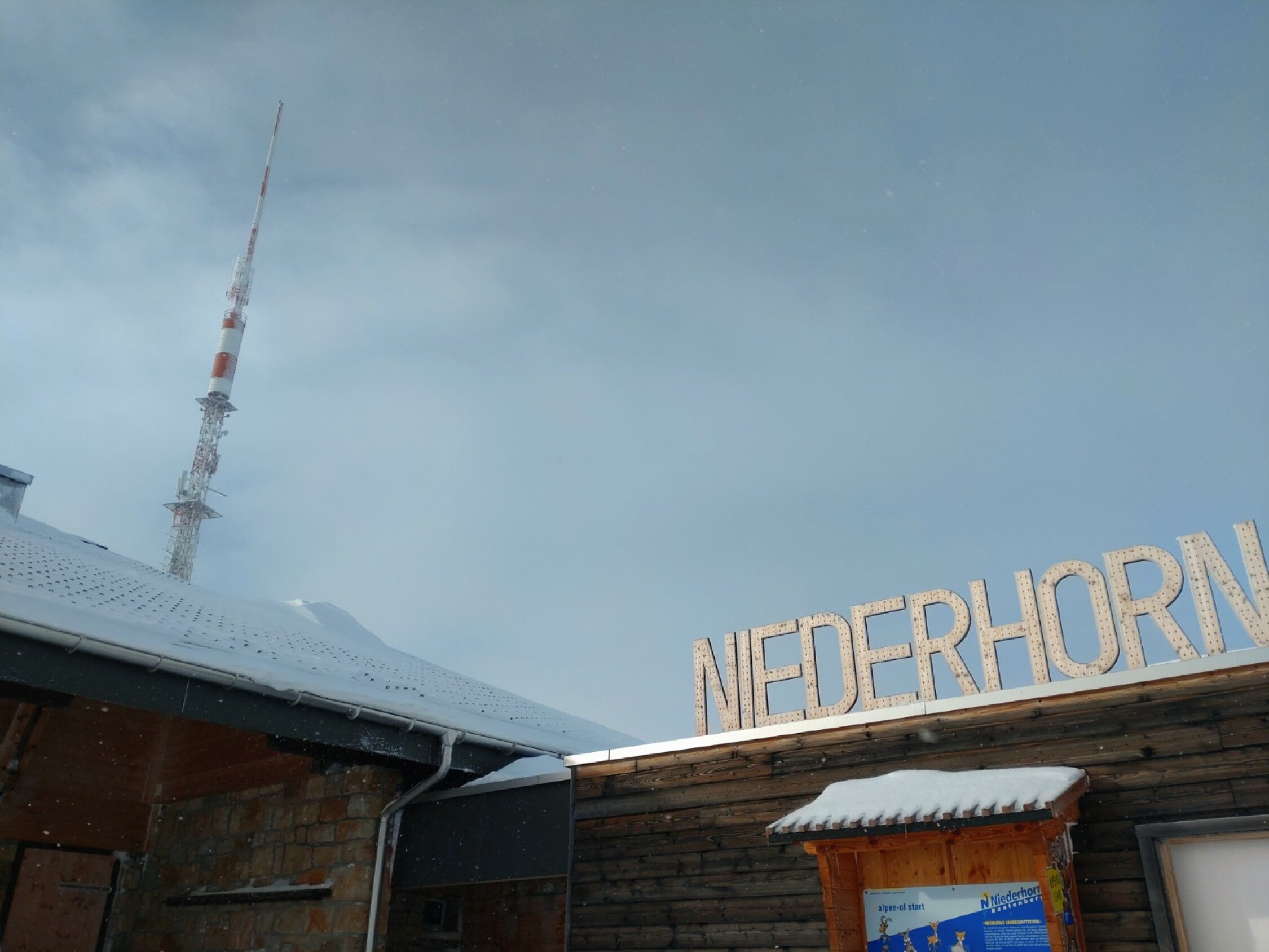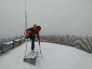 D.h. eine Viertelstunde schwacher und ruhiger Schneefall auf dem Gipfel. Die Sichtverhältnisse waren zu jederzeit gut.